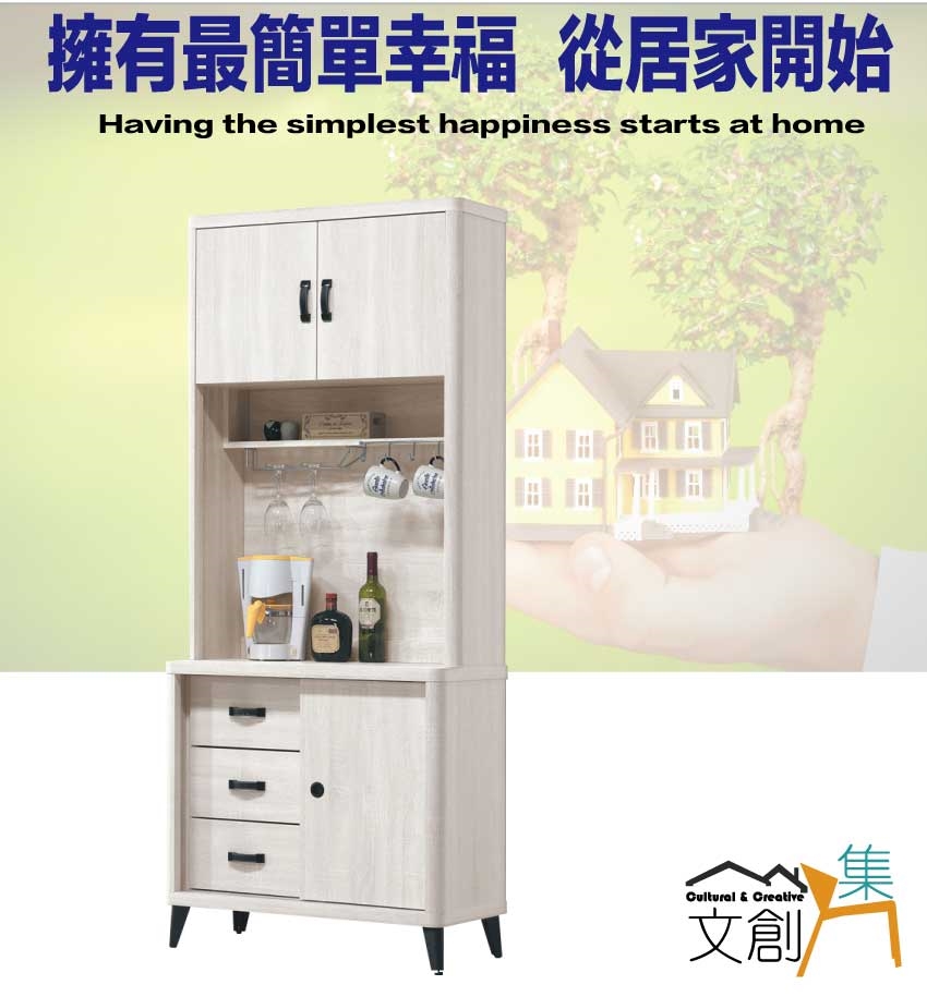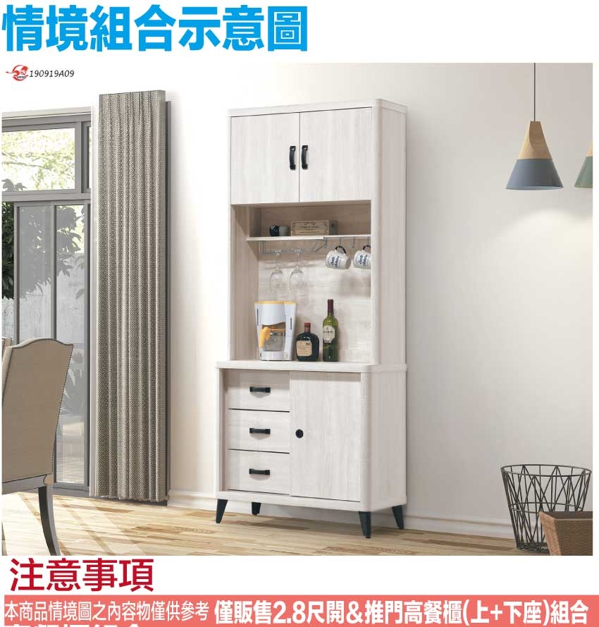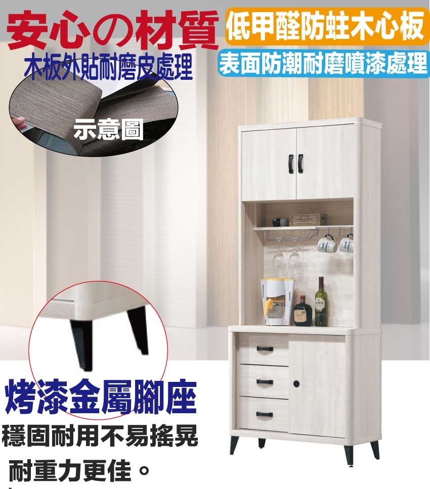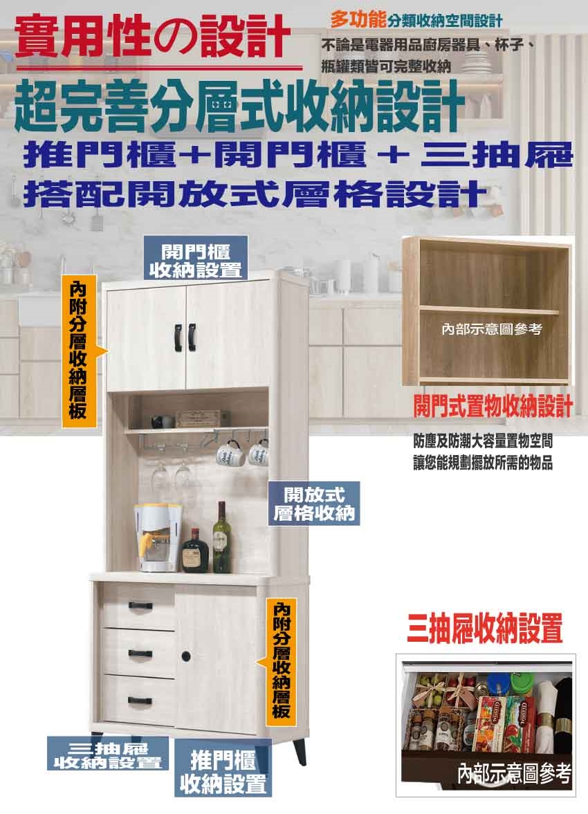- ◆產品名稱:【綠家居】杰特淺橡2.8尺開&推門三抽高餐櫃組合