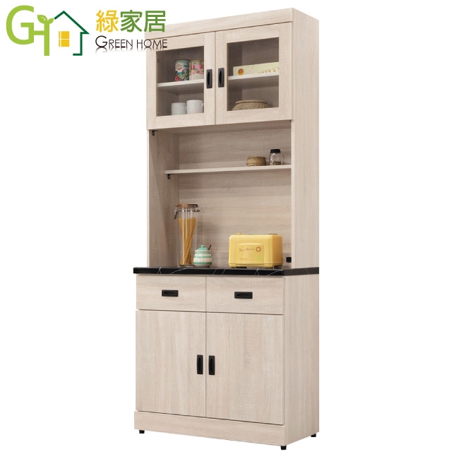 【綠家居】安可2.7尺雲紋石面高餐櫃組合