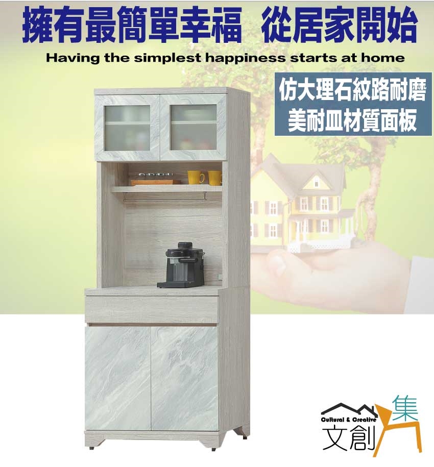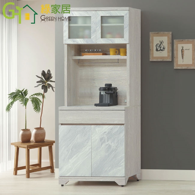 【綠家居】羅登2.7尺四門單抽高餐櫃組合(仿大理石紋路耐磨美耐皿面板)