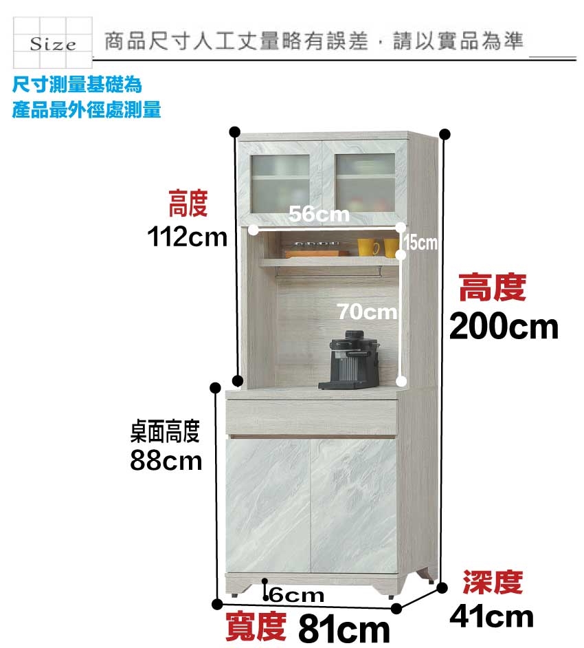 - 尺寸:(寬)81x(深)41x(高)200/公分