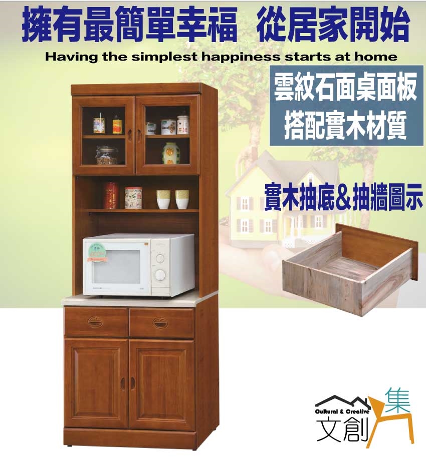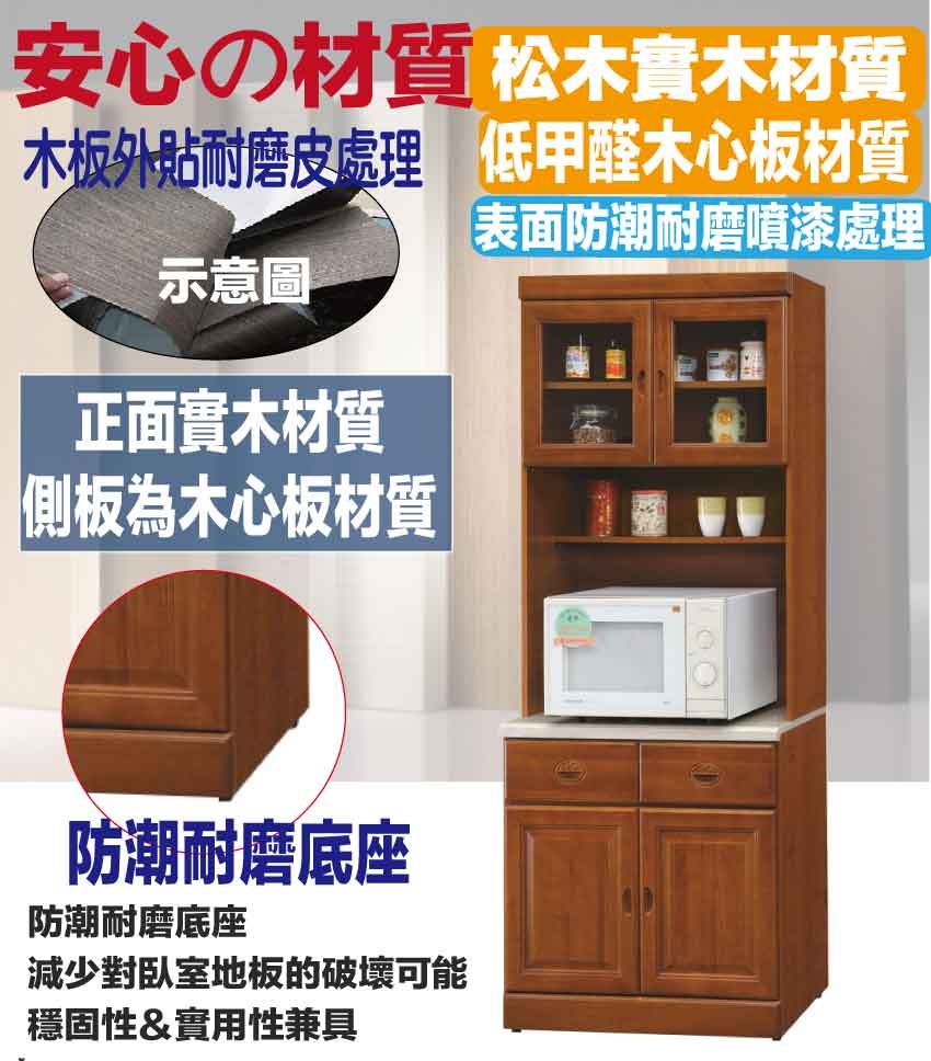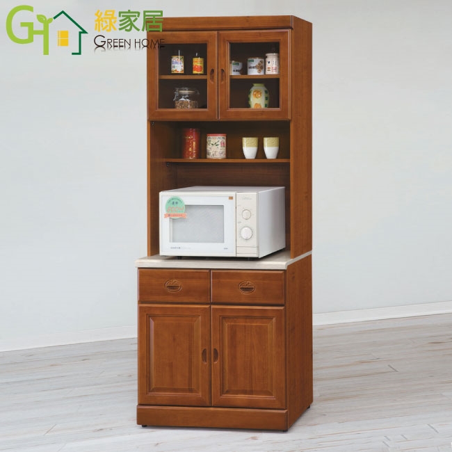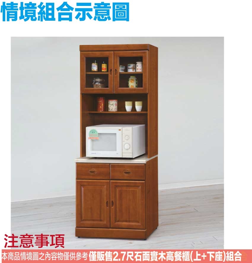 【綠家居】羅西2.7尺實木雲紋石面高餐櫃組合