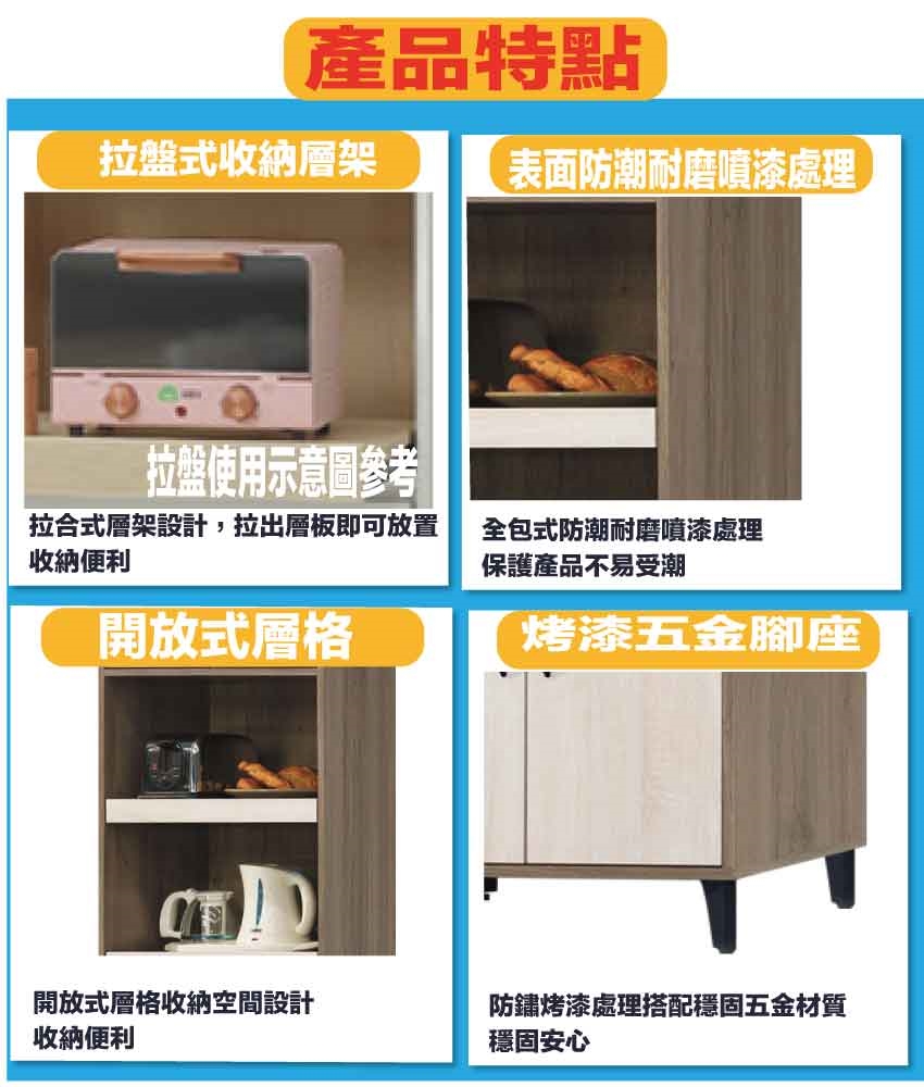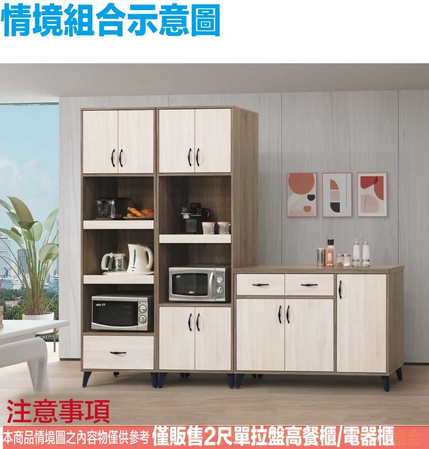 - ◆產品名稱:【綠家居】米亞2尺二門雙拉盤高電器櫃/餐櫃