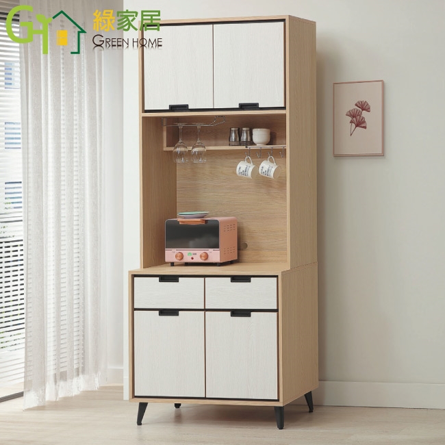 【綠家居】摩卡雙色2.8尺四門二抽高餐櫃組合