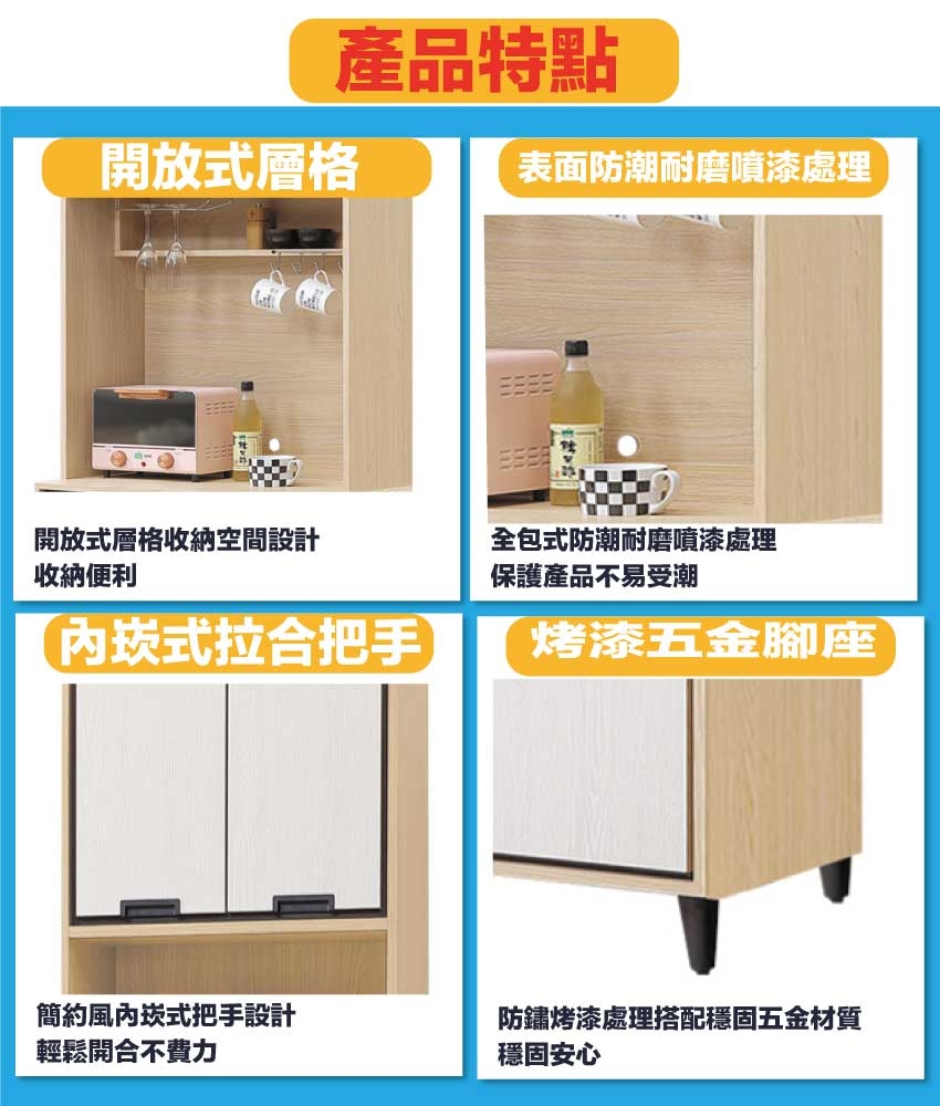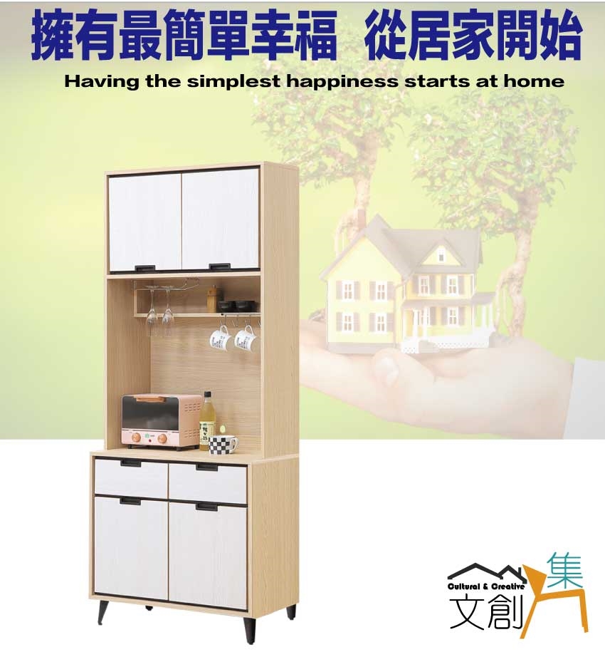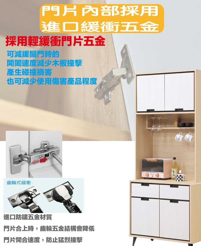 - ◆產品名稱:【綠家居】摩卡雙色2.8尺四門二抽高餐櫃組合
