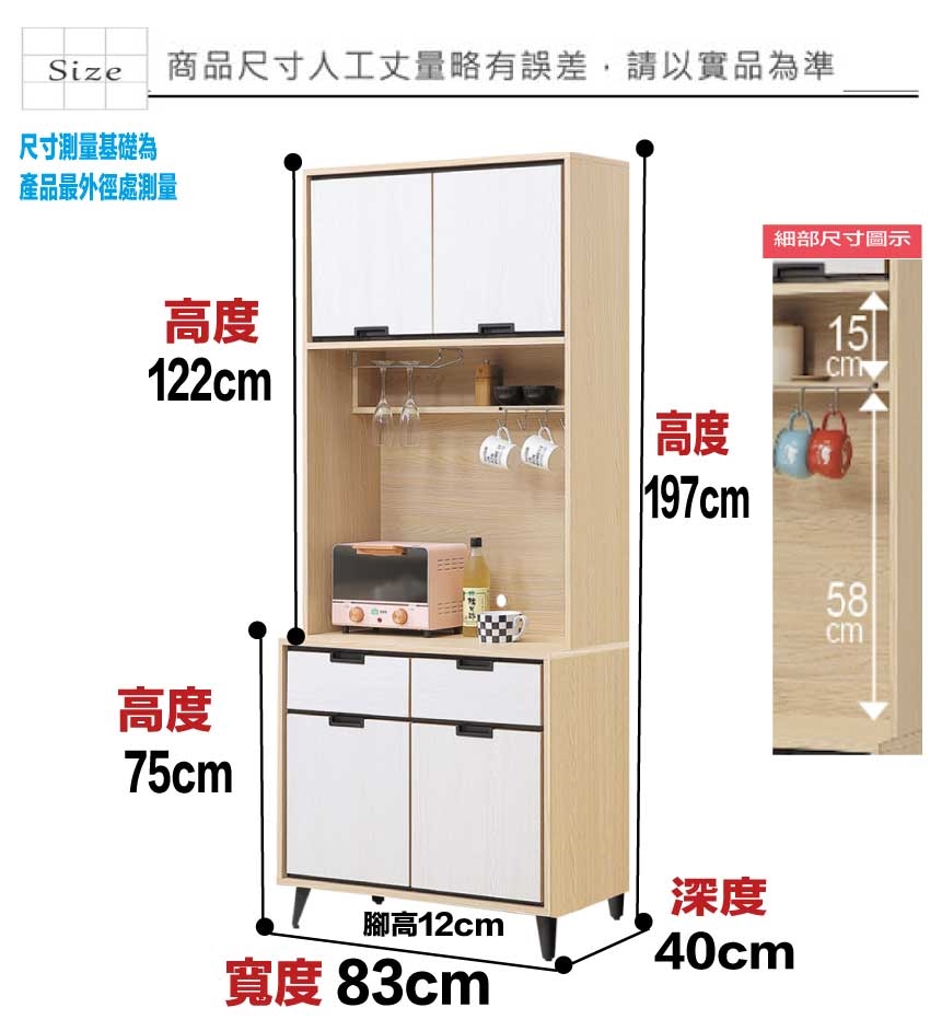 - 尺寸:(寬)83x(深)40x(高)197/公分