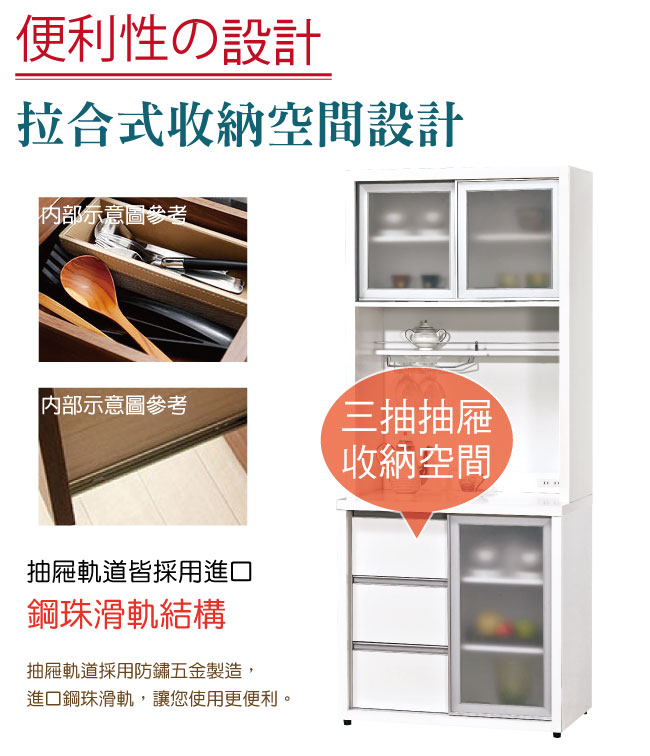 【綠家居】哈雅納 時尚2.7尺鋁框推門餐櫃/收納櫃組合(二色可選&上+下座) 以時尚的美型設計+防蛀木心板+鋼珠滑軌結構+4mm高硬度強化玻璃+防鏽鋁製邊框+優利坦抗磨三層全包式塗漆塗裝等材質製作,讓您使用防潮防蛀更安心,耐用牢固承重量高。餐櫃組合採用三抽屜+三門櫃+開放式層格等收納置物等多重收納設計,另外抽屜軌道搭配鋼珠滑軌安全性結構,滑順好開,操作變得容易自如,使用不費力照料您的生活【綠家居】哈雅納 時尚2.7尺鋁框推門餐櫃/收納櫃組合(二色可選&上+下座) 全由專人配送到家,專業安心服務,替你省下更多時間