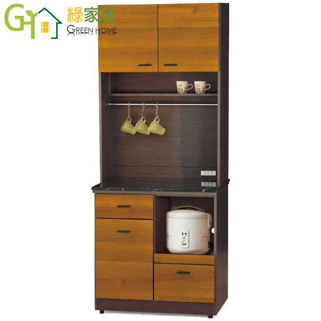| ◆產品名稱:【綠家居】艾多尼 雙色2.7尺雲紋石面餐櫃/收納櫃組合(上+下座) 尺寸:(寬)80.5x(深)46x(高)198公分