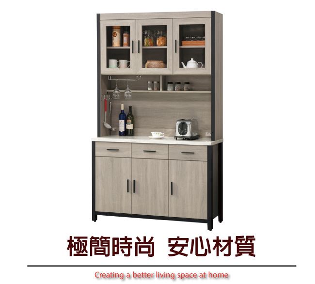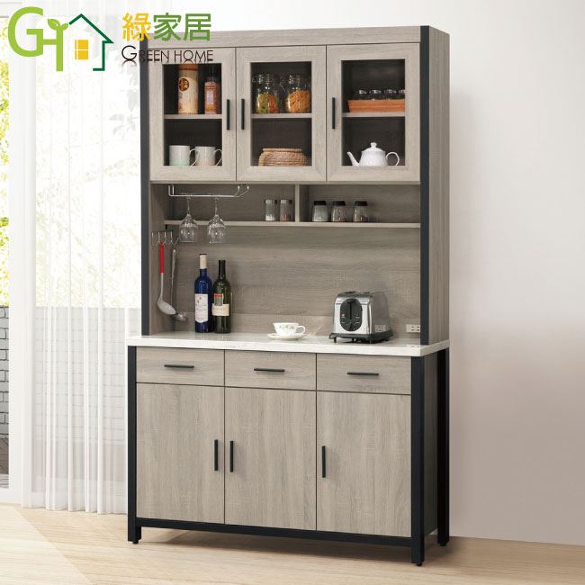 【綠家居】科托 時尚4尺六門三抽餐櫃/收納櫃組合