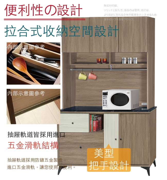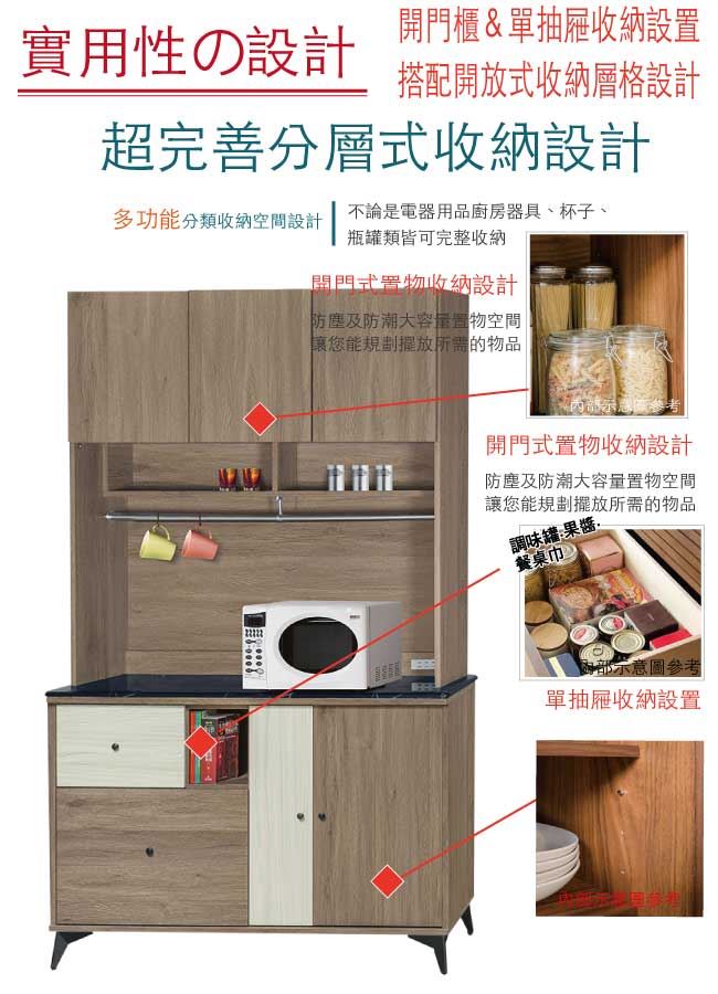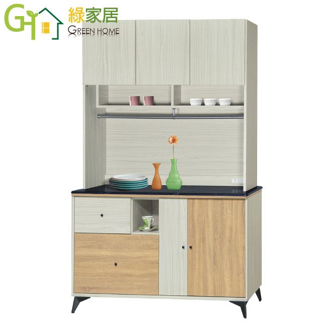【綠家居】甘托克 現代4尺雲紋石面餐櫃/收納櫃組合(二色可選+上+下座)