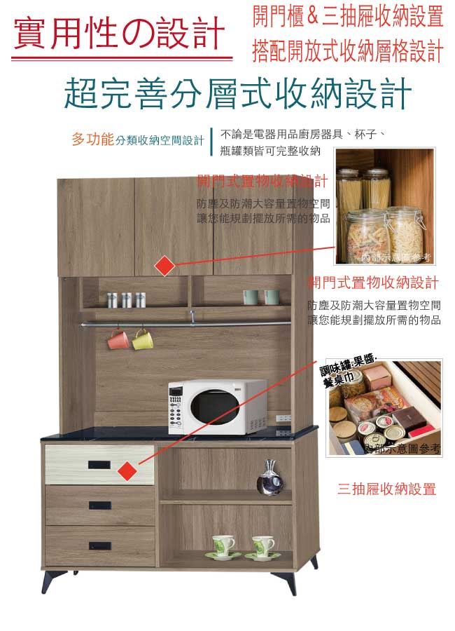 【綠家居】托克 現代4尺雲紋石面餐櫃/收納櫃組合(二色可選+上+下座)