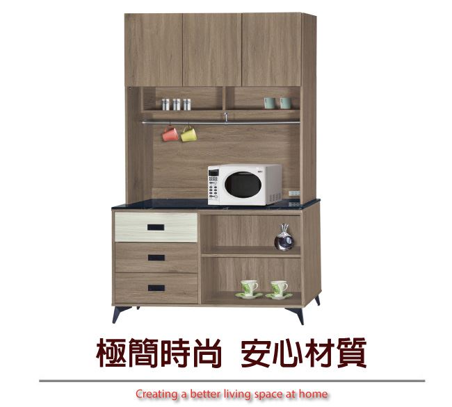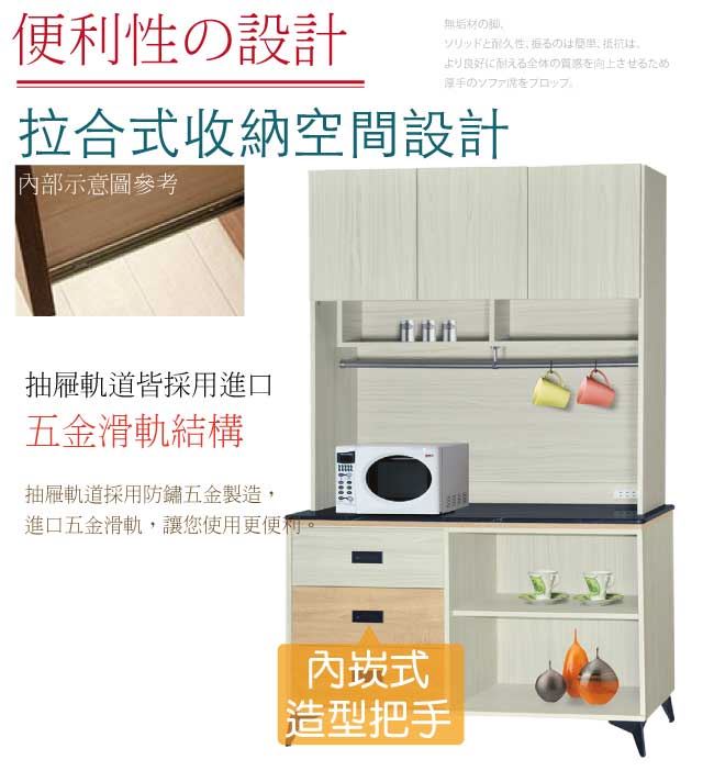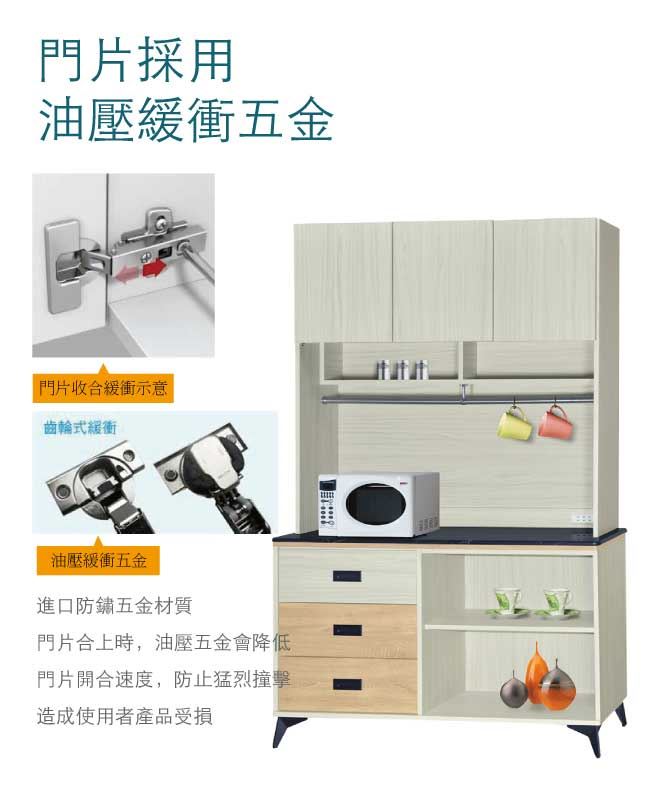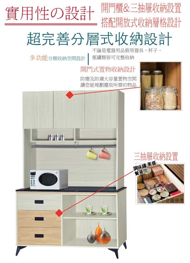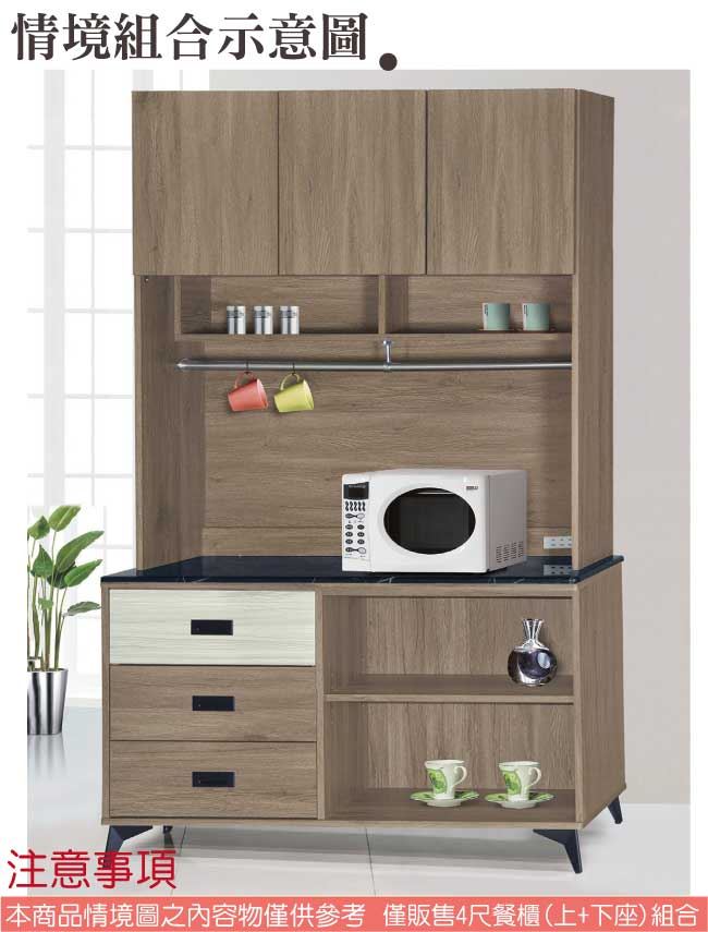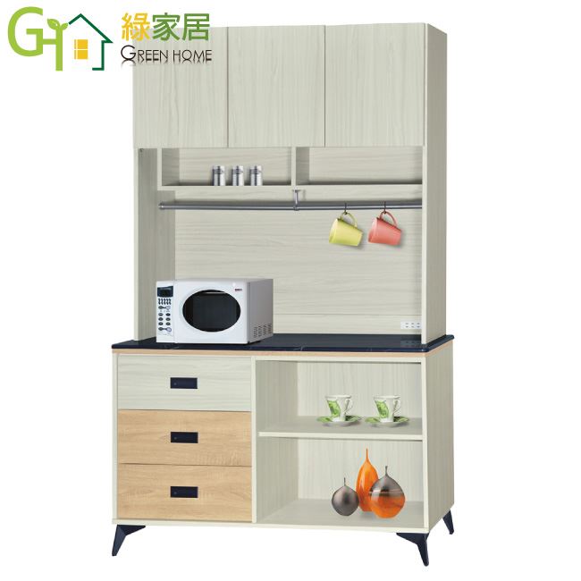 【綠家居】哈爾貝 三門三抽4尺雲紋石面餐櫃組合(二色可選)