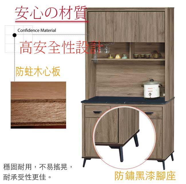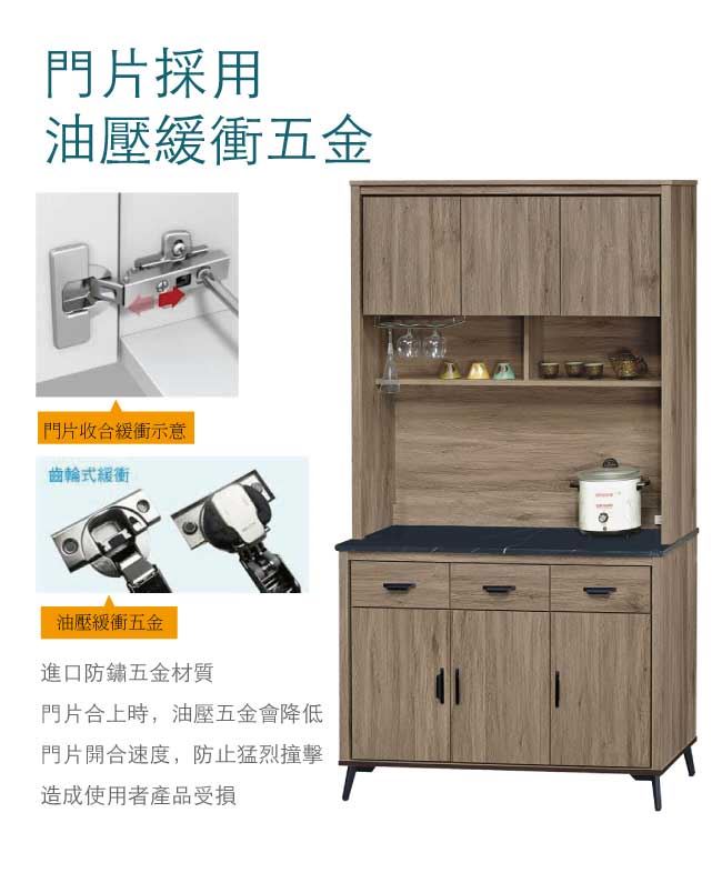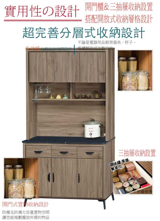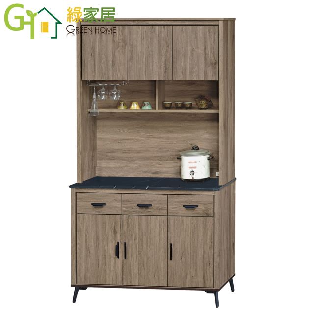 【綠家居】佐安斯 灰橡4尺雲紋石&岩板餐櫃組合(二色石面可選)
