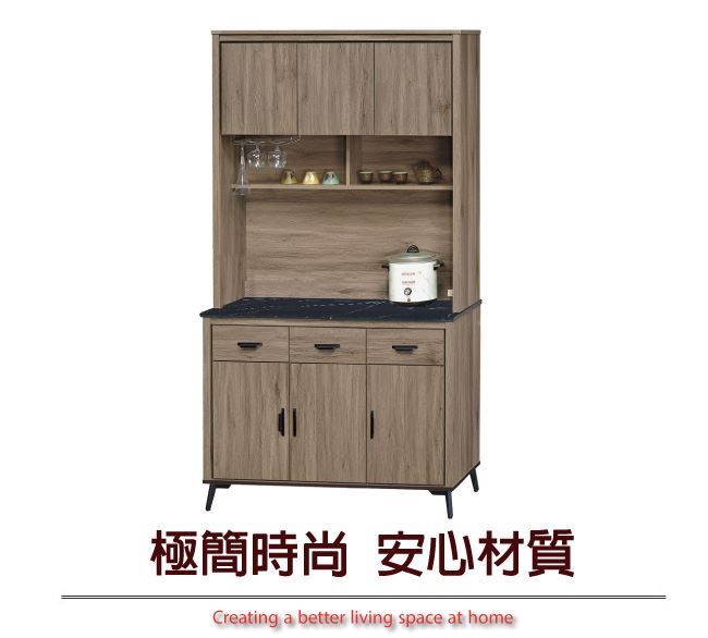 材質 | ◆產品名稱: 【綠家居】佐安斯 灰橡4尺雲紋石&岩板餐櫃組合(二色石面可選) 尺寸:(寬)121x(深)41x(高)203.5/公分 ◆材質: 材質:防蛀木心板+黑鐵砂腳座+五金滑軌結構+12mm黑白雲紋石面板&黑岩板面板+防夾手緩衝門片五金 噴漆:防潮耐磨噴漆處理