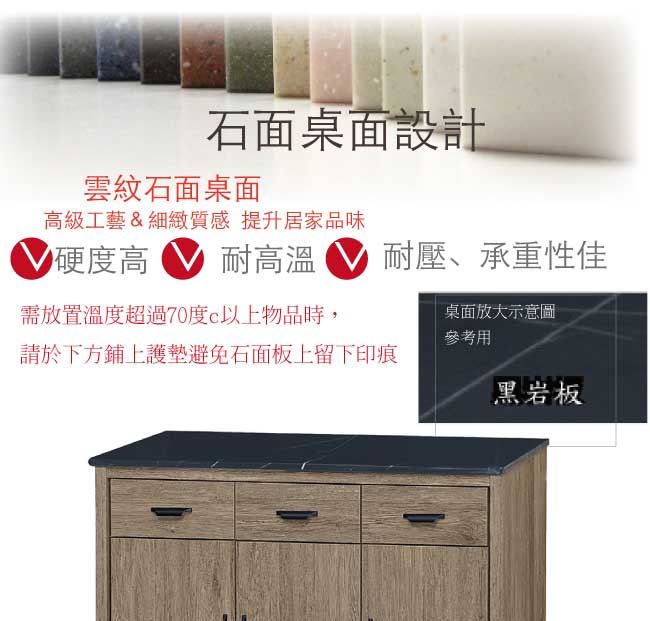 商品介紹 | 【綠家居】佐安斯 灰橡4尺雲紋石&岩板餐櫃組合(二色石面可選) 灰橡木紋色系+現代簡約風格+安心材質製造,整體採用防蛀木心板+黑鐵砂腳座+五金滑軌結構+12mm黑白雲紋石面板&黑岩板面板+防夾手緩衝門片五金等安心材質製造,產品外層採用防潮耐磨噴漆處理搭配採用開門櫃+三抽屜+開放式收納等收納空間設計,全由專人配送到家,專業安心服務,替你省下更多時間! 【商品特色】 灰橡木紋色系+現代簡約風格+安心材質製造,使用放心+搭配居家更便利 採用防蛀木心板+黑鐵砂腳座+五金滑軌結構+12mm黑白雲紋石面板&黑岩板面板+防夾手緩衝門片五金等安心材質製造 產品外層採用防潮耐磨噴漆處理 搭配採用開門櫃+三抽屜+開放式收納等收納空間設計 此商品不需要DIY組立,此商品為組立後之成品 品質保證、專業設計、貼心服務 全由專人配送到家,專業安心服務,替您省下更多時間 |