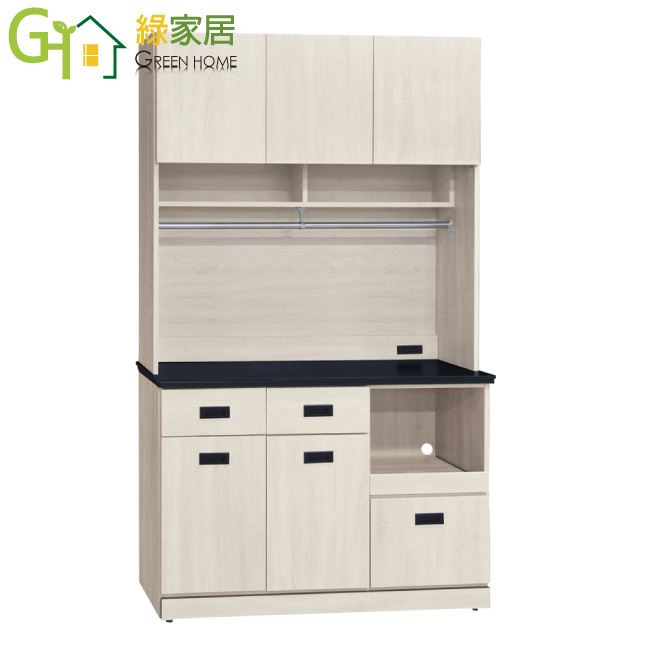 【綠家居】安博 淺橡4尺雲紋石&岩板餐櫃組合(二色石面可選)
