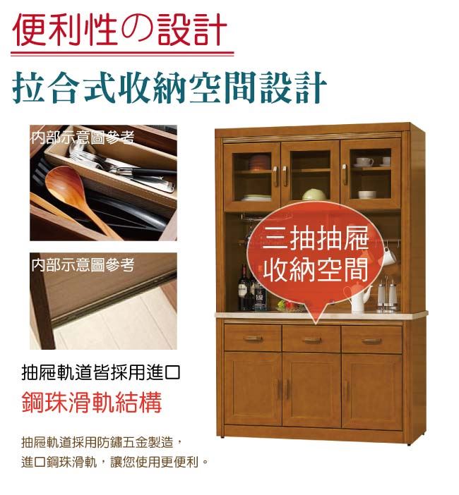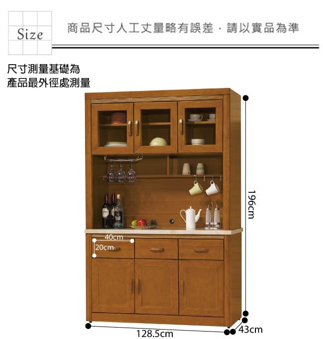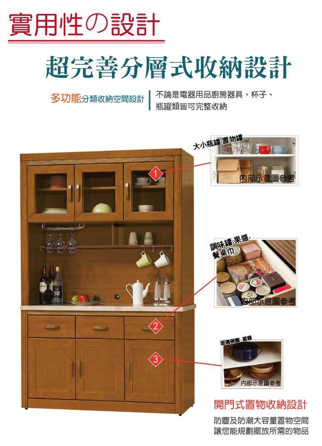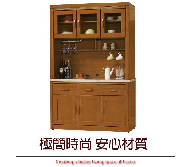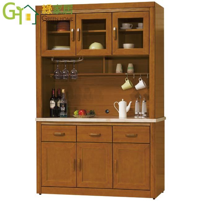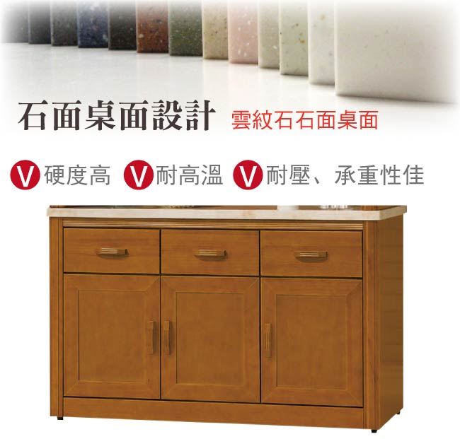 【綠家居】瑪麗 實木4.3尺雲紋石面高餐櫃/收納櫃組合