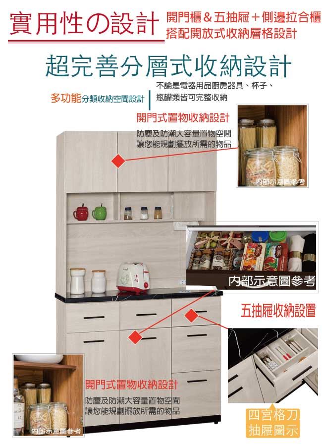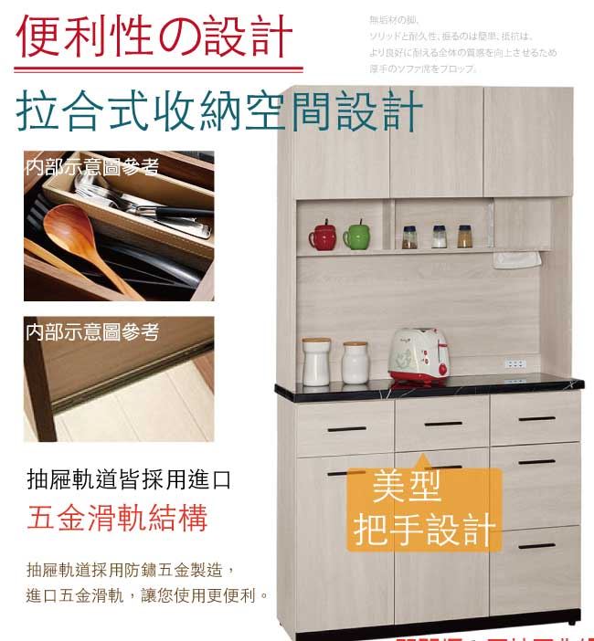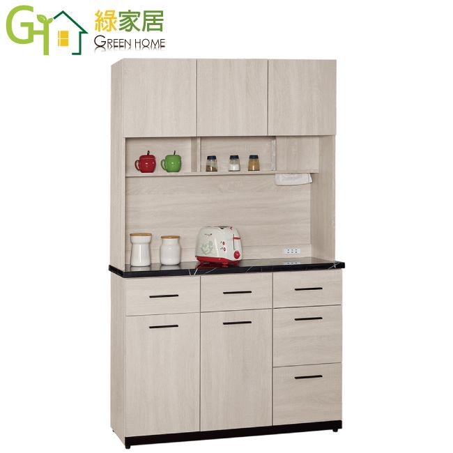 【綠家居】艾藍 時尚4尺雲紋石面餐櫃/收納櫃組合