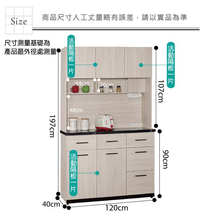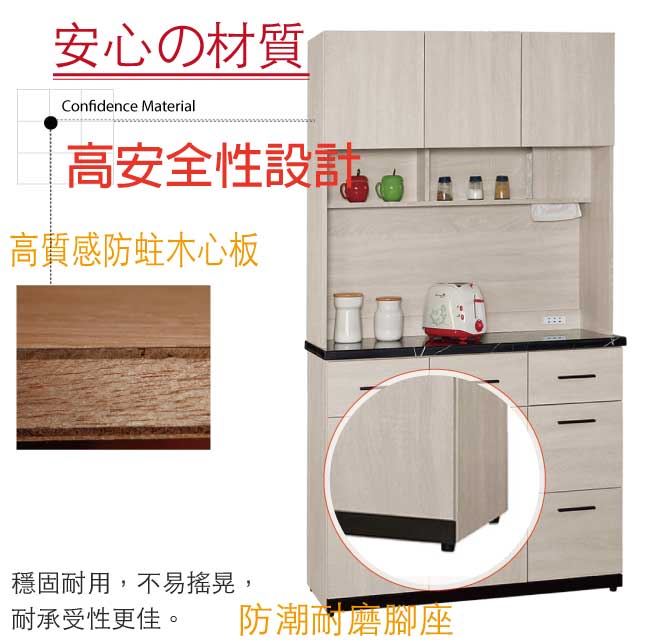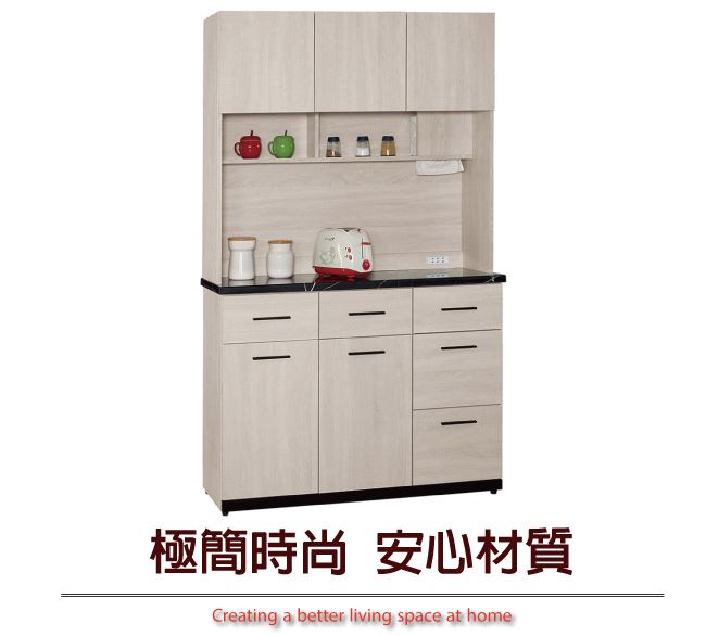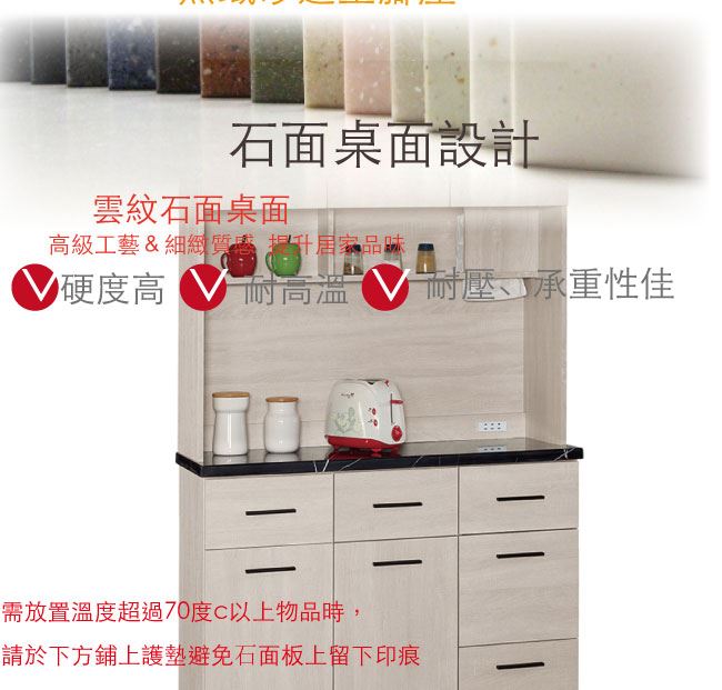 材質 | ◆產品名稱: 【綠家居】艾藍 時尚4尺雲紋石面餐櫃/收納櫃組合 尺寸:(寬)120x(深)40x(高)197/公分 ◆材質: 材質:防蛀木心板+防潮耐磨腳座+防夾手緩衝門片五金+五金滑軌結構+8mm雲紋石面桌面板 噴漆:防潮耐磨噴漆處理