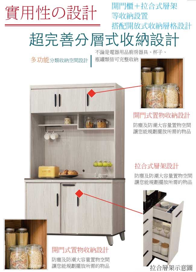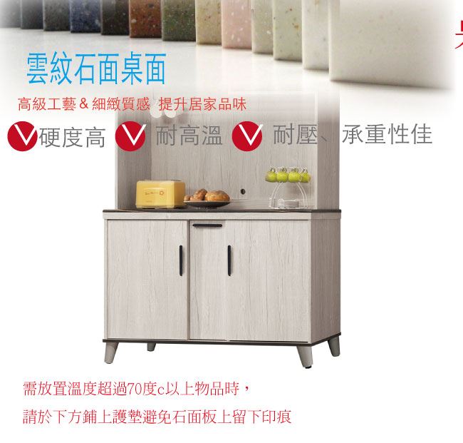 - ◆產品名稱:【綠家居】杜伊洛4尺雲紋石面高餐櫃/收納櫃組合