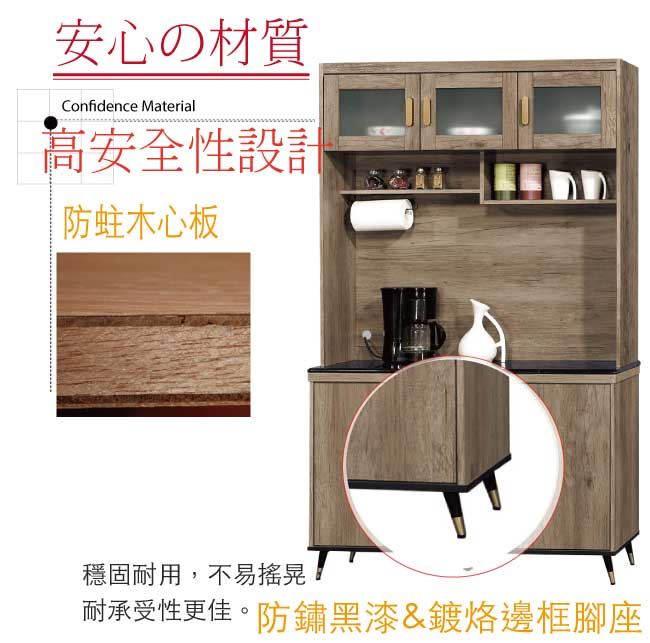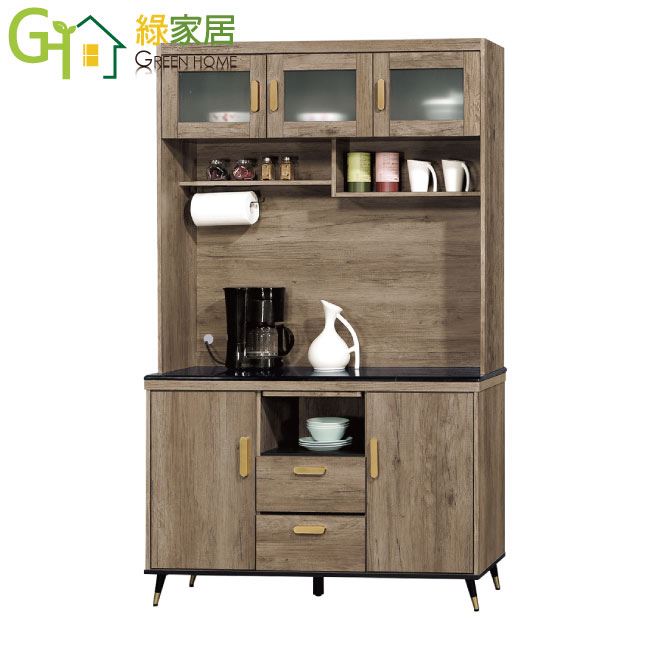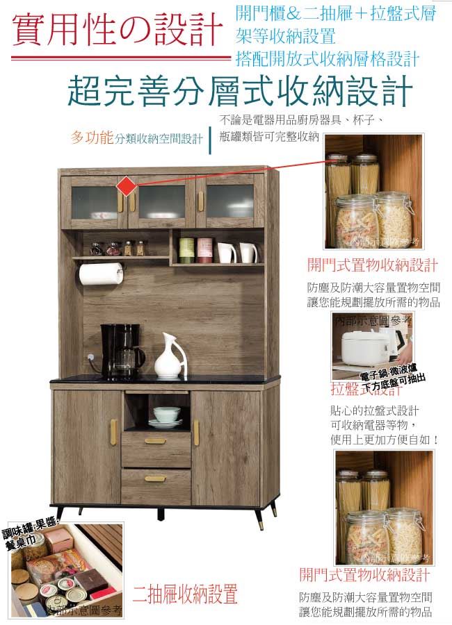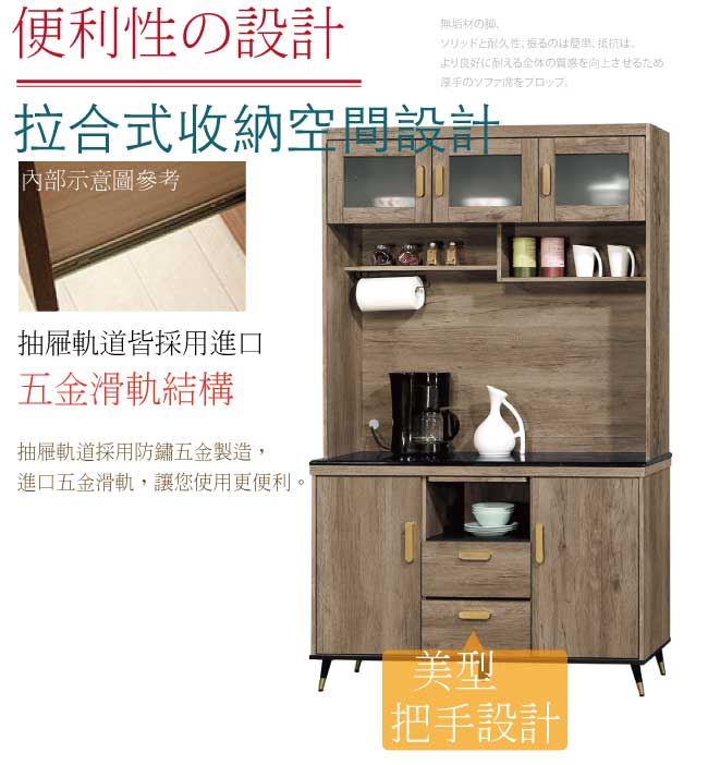 【綠家居】波依雲紋石面4尺開門拉盤高餐櫃/收納櫃組合