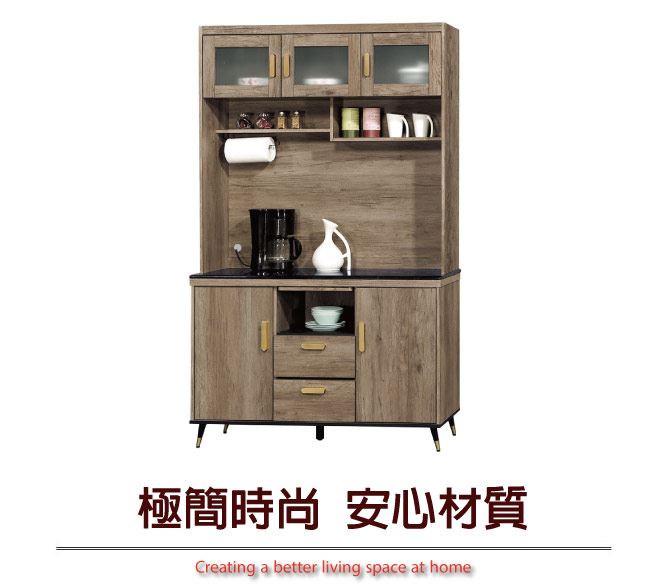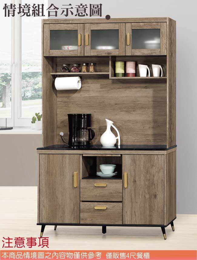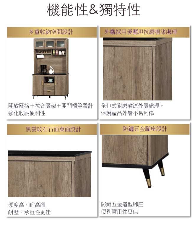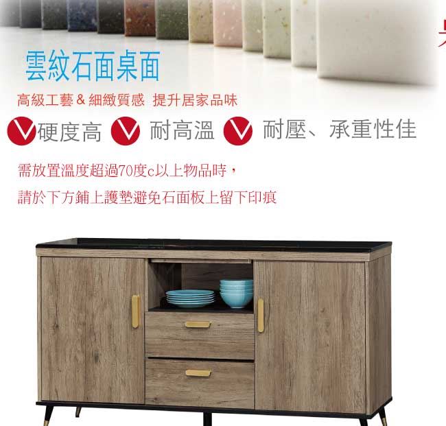 - ◆產品名稱:【綠家居】波依雲紋石面4尺開門拉盤高餐櫃/收納櫃組合