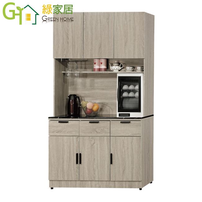 - ◆產品名稱:【綠家居】波婭4尺雲紋石面高餐櫃/收納櫃組合