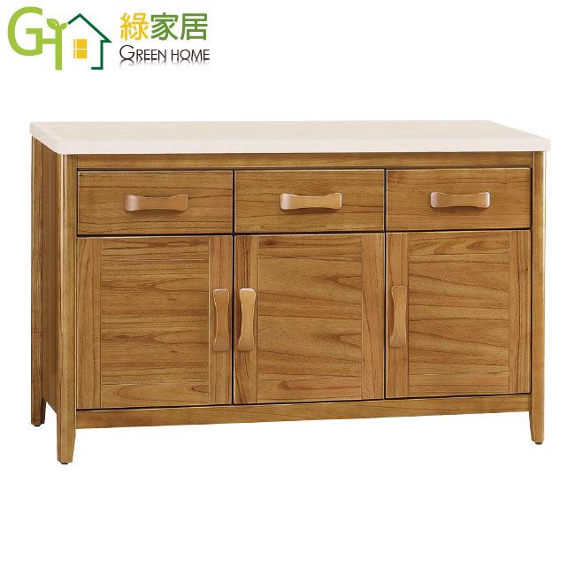 - ◆產品名稱:【綠家居】巴格柚木紋4.2尺雲紋石面低實木餐櫃/收納櫃