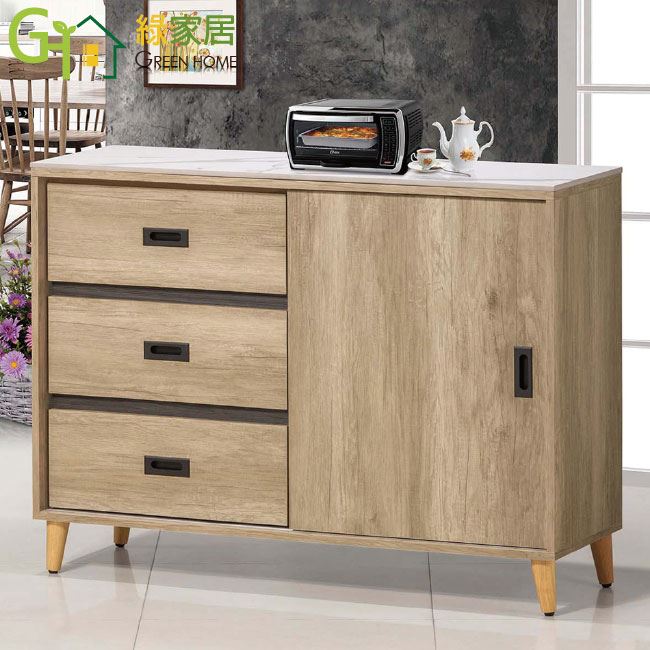 【綠家居】天普推門4尺三抽岩板低餐櫃/收納櫃