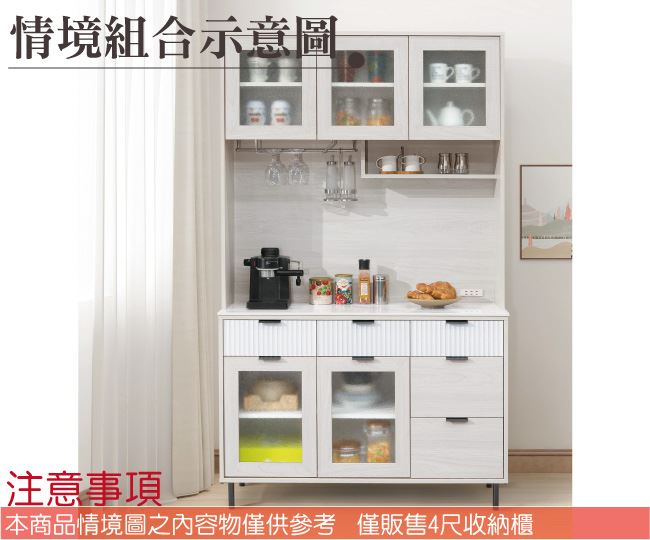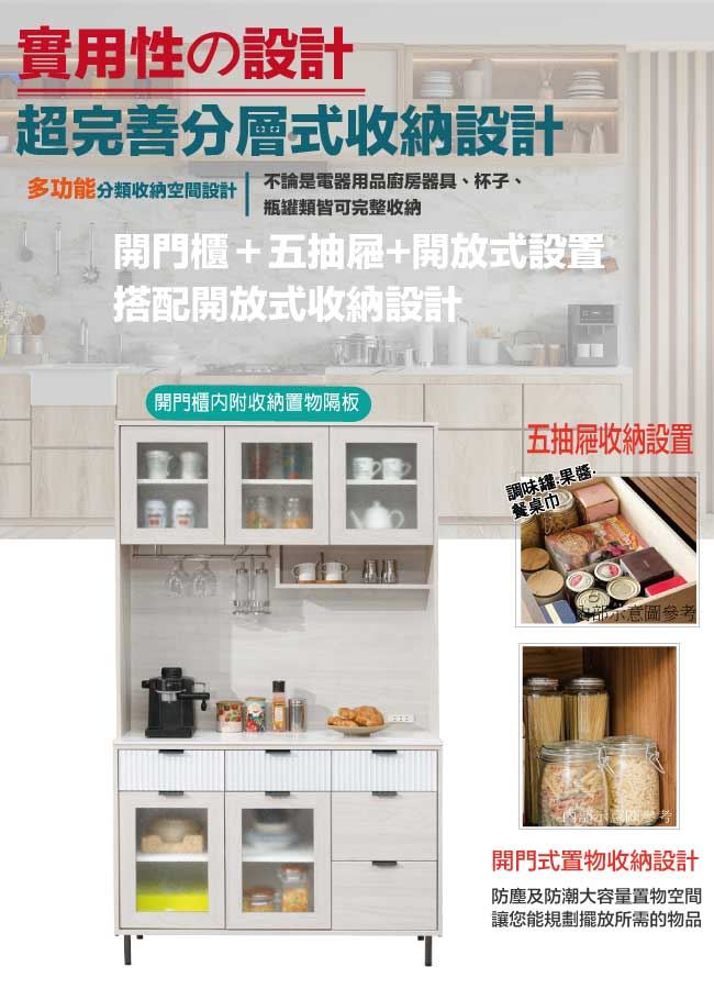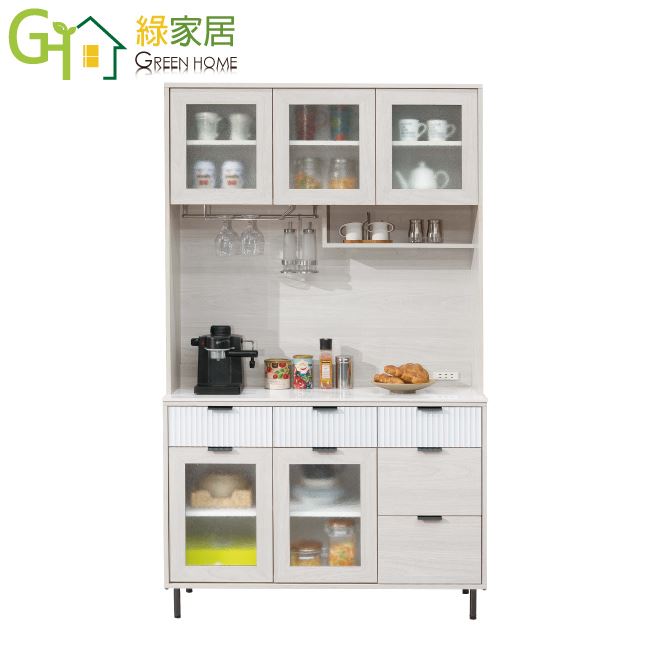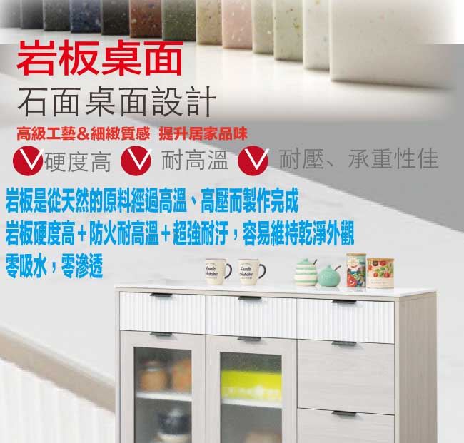 【綠家居】剛果雙色4尺岩板五抽高餐櫃/收納櫃組合