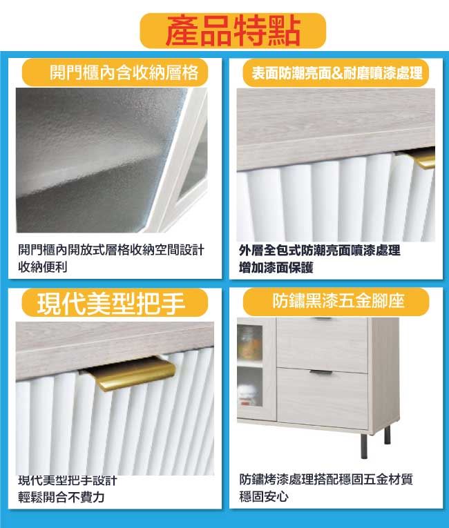 商品 介紹 | 【綠家居】剛果雙色4尺岩板五抽高餐櫃/收納櫃組合 時尚雙色系+現代簡約風格+安心材質製造,整體採用防蛀木心板+防鏽黑漆五金腳座(12cm高)+五金滑軌結構+12mm高硬度岩板等安心材質製造,產品外層採用防潮亮面&耐磨噴漆處理搭配採用開門櫃+五抽屜+開放式收納等收納空間設計,全由專人配送到家,專業安心服務,替你省下更多時間! 【商品特色】 時尚雙色系+現代簡約風格+安心材質製造,使用放心+搭配居家更便利 採用防蛀木心板+防鏽黑漆五金腳座(12cm高)+五金滑軌結構+12mm高硬度岩板等安心材質製造 產品外層採用防潮亮面&耐磨噴漆處理 搭配採用開門櫃+五抽屜+開放式收納等收納空間設計 此商品不需要DIY組立,此商品為組立後之成品 品質保證、專業設計、貼心服務 全由專人配送到家,專業安心服務,替您省下更多時間 |