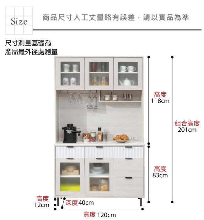 材質 | ◆產品名稱:【綠家居】剛果雙色4尺岩板五抽高餐櫃/收納櫃組合 尺寸:(寬)120x(深)40(高)201公分 ◆材質: 材質:防蛀木心板+防鏽黑漆五金腳座(12cm高)+五金滑軌結構+12mm高硬度岩板 噴漆:防潮亮面&耐磨噴漆處理