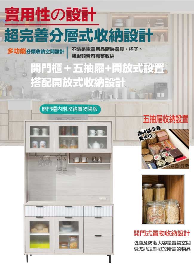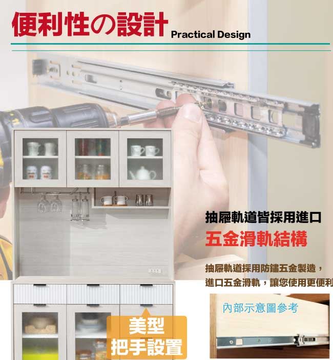 商品 介紹 | 【綠家居】剛果雙色4尺五門五抽高餐櫃/收納櫃組合 時尚雙色系+現代簡約風格+安心材質製造,整體採用防蛀木心板+防鏽黑漆五金腳座(12cm高)+五金滑軌結構等安心材質製造,產品外層採用防潮亮面&耐磨噴漆處理搭配採用開門櫃+五抽屜+開放式收納等收納空間設計,全由專人配送到家,專業安心服務,替你省下更多時間! 【商品特色】 時尚雙色系+現代簡約風格+安心材質製造,使用放心+搭配居家更便利 採用防蛀木心板+防鏽黑漆五金腳座(12cm高)+五金滑軌結構等安心材質製造 產品外層採用防潮亮面&耐磨噴漆處理 搭配採用開門櫃+五抽屜+開放式收納等收納空間設計 此商品不需要DIY組立,此商品為組立後之成品 品質保證、專業設計、貼心服務 全由專人配送到家,專業安心服務,替您省下更多時間 |