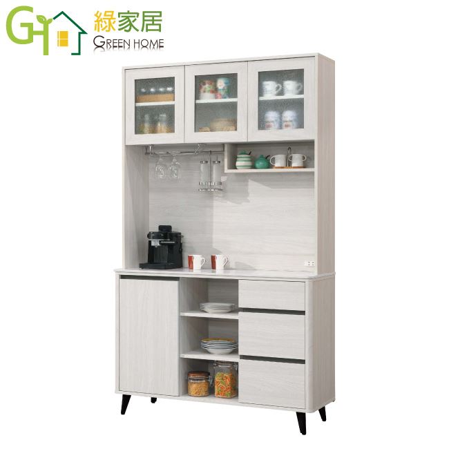 【綠家居】魁北克4尺岩板三抽高餐櫃/收納櫃組合