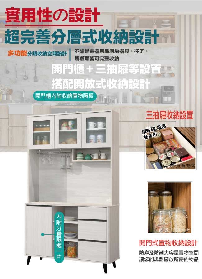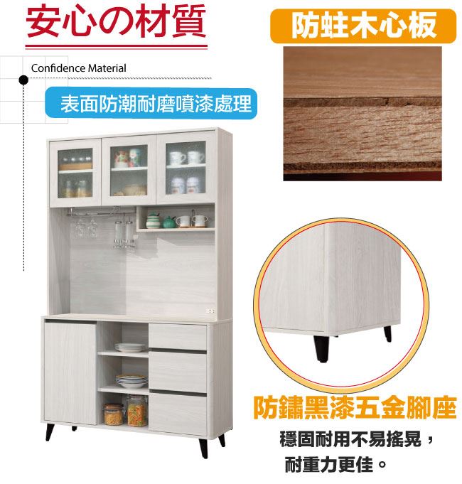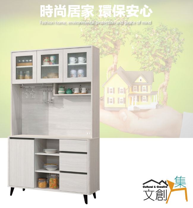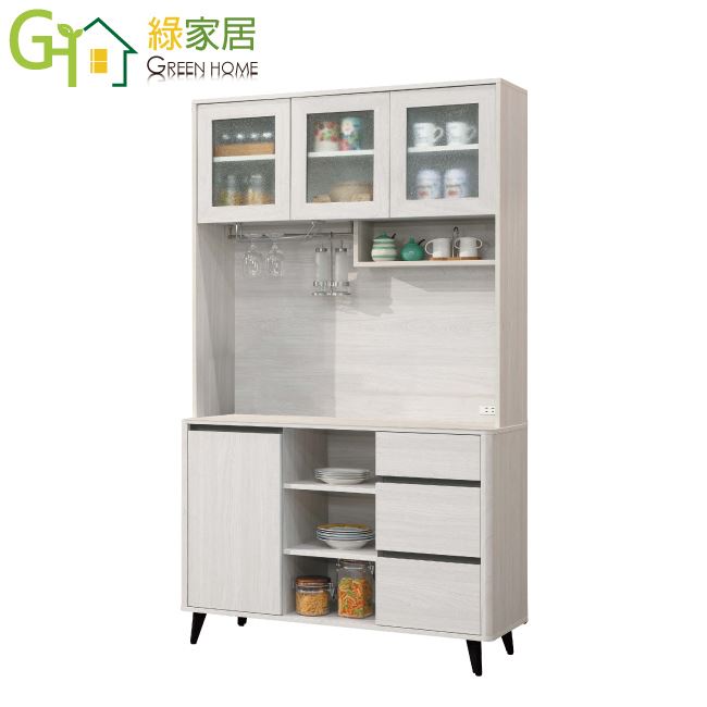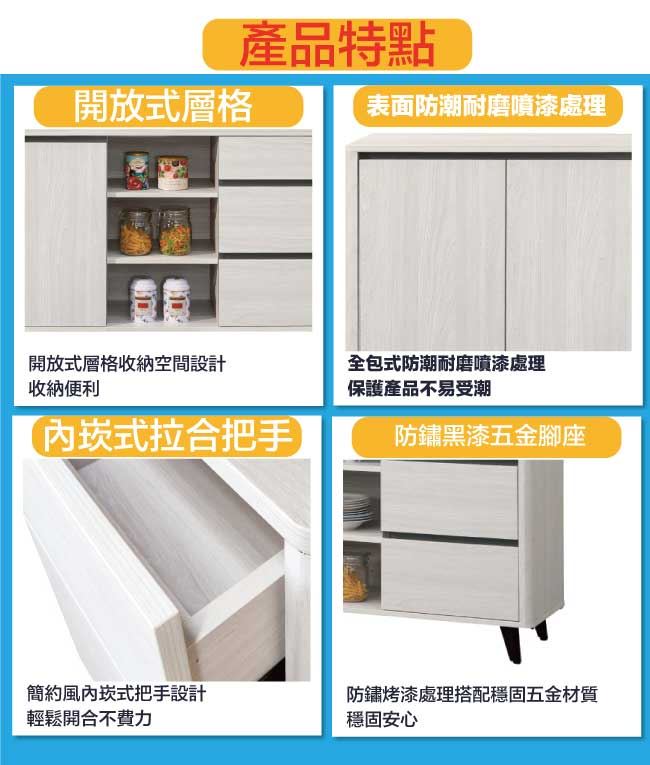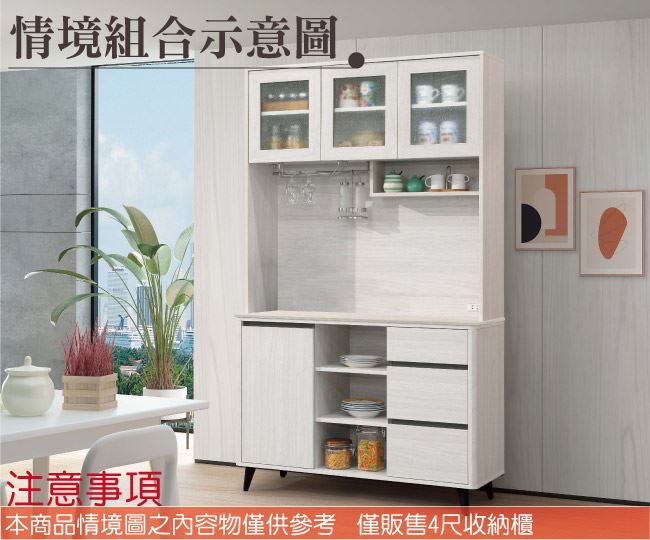 【綠家居】魁北克4尺四門三抽高餐櫃/收納櫃組合