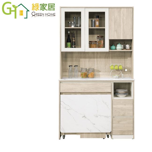 【綠家居】羅娜岩板4尺多功能高餐桌櫃組合(拉合餐桌+餐櫃)