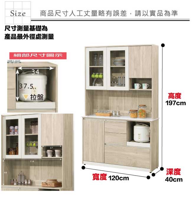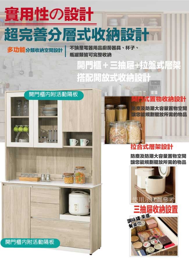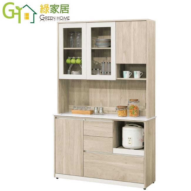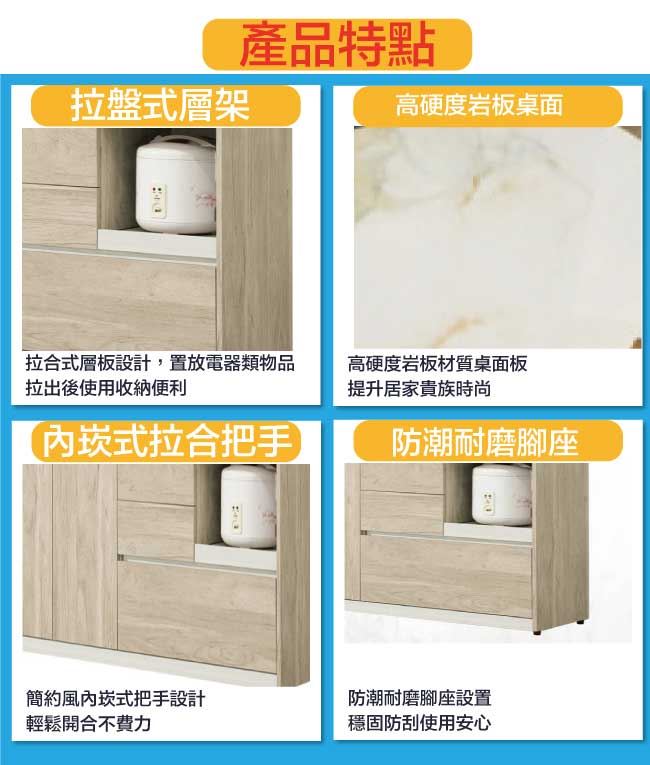 【綠家居】羅娜岩板4尺四門三抽拉盤高餐櫃組合