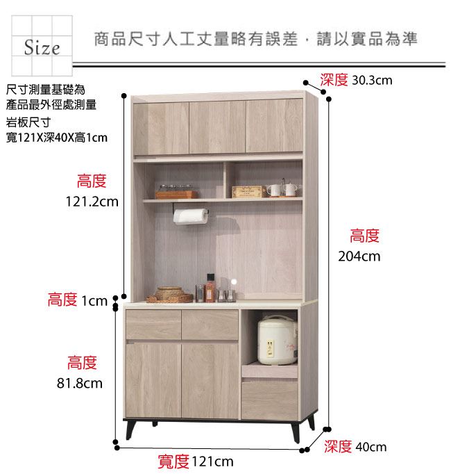 材質 | ◆產品名稱:【綠家居】雅洛岩板4尺五門三抽拉盤高餐櫃組合 尺寸:(寬)121x(深)40(高)204公分 ◆材質: 材質:防蛀木心板+防鏽五金腳座+五金滑軌結構+防夾手緩衝門片五金+12mm高硬度岩板桌面板 噴漆:防潮耐磨噴漆處理