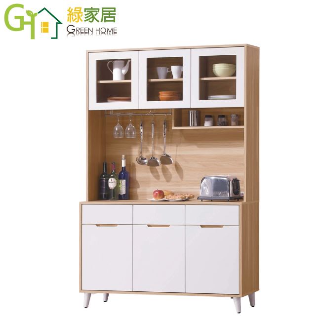 【綠家居】瑪維斯4尺六門三抽高餐櫃/收納櫃組合