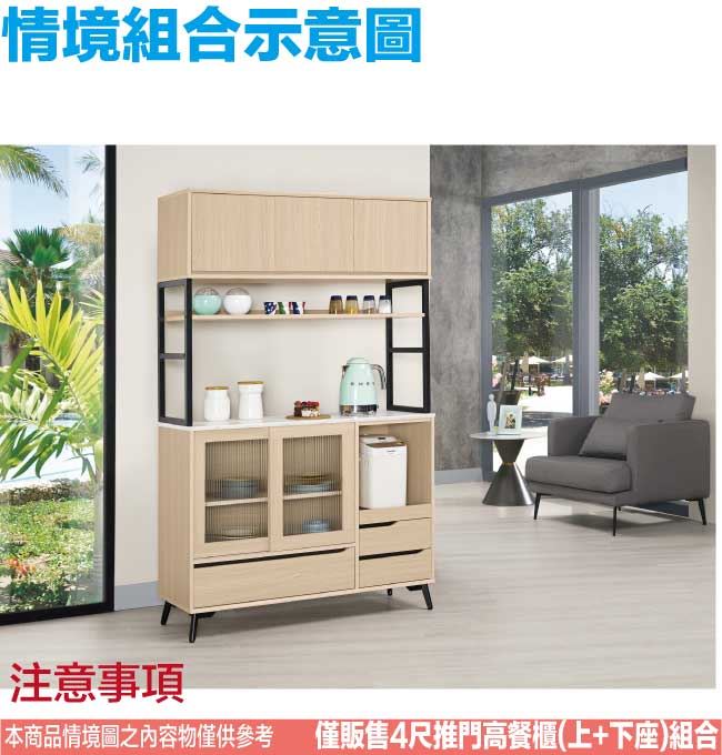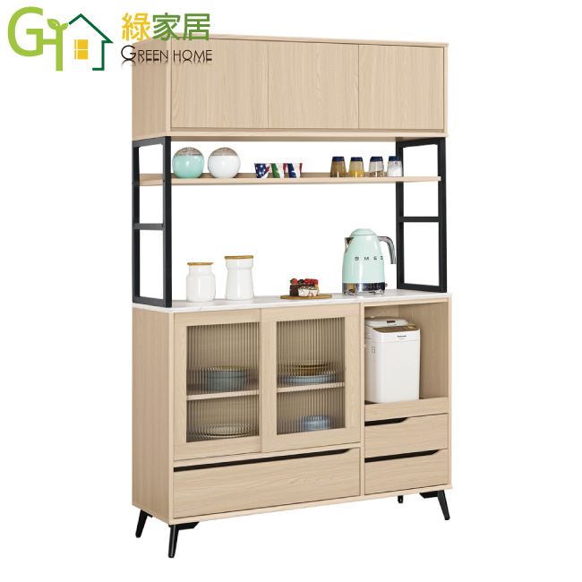 【綠家居】蘭達4尺推&開門玻璃五抽高餐櫃組合