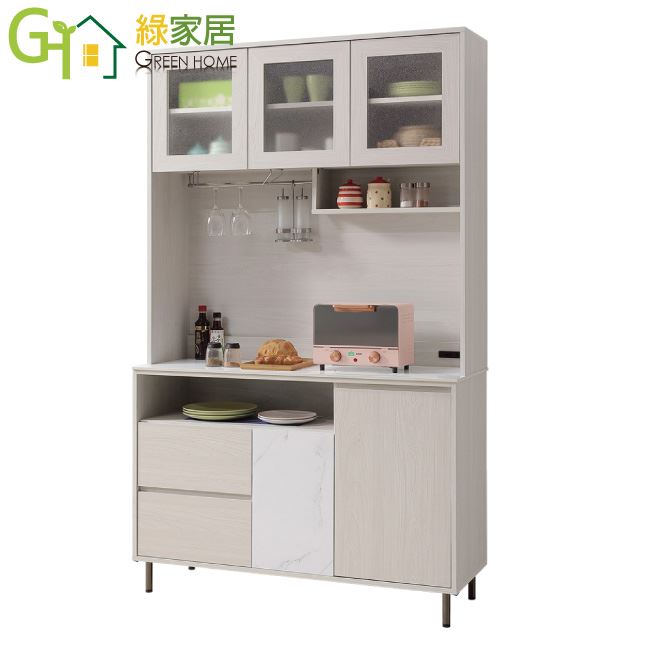 【綠家居】奧蘭雙色4尺岩板高餐櫃組合