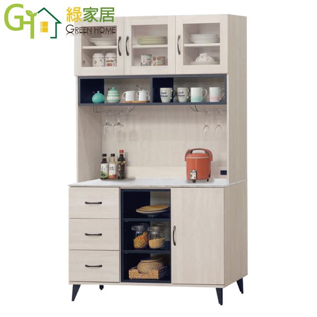 【綠家居】歐維4尺四門三抽高餐櫃組合