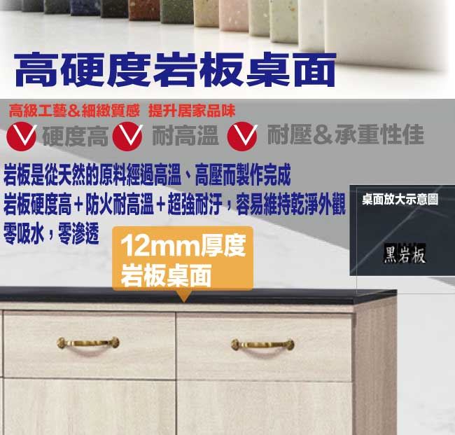 材質 | ◆產品名稱:【綠家居】洛里奇4尺高硬度岩板高餐櫃組合 尺寸:(寬)121x(深)41(高)202/公分 ◆材質: 材質:防蛀木心板+烤漆金屬腳座+五金滑軌結構+12mm高硬度岩板桌面板 噴漆:防潮耐磨噴漆處理 |