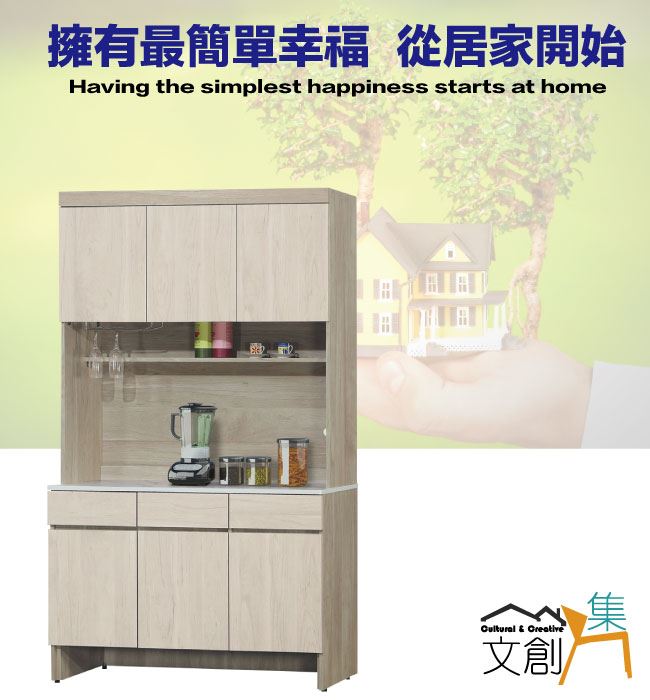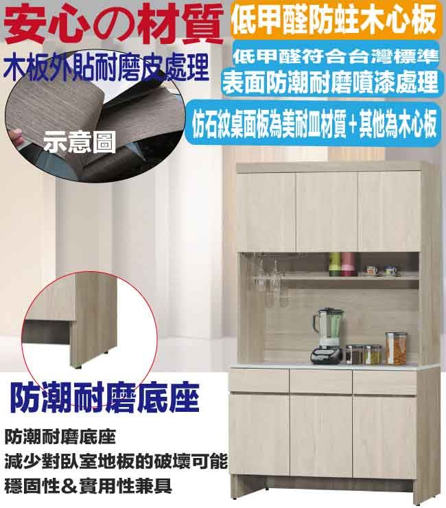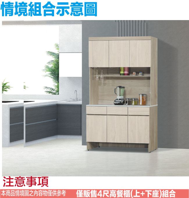 【綠家居】德維雙色4尺六門三抽高餐櫃組合