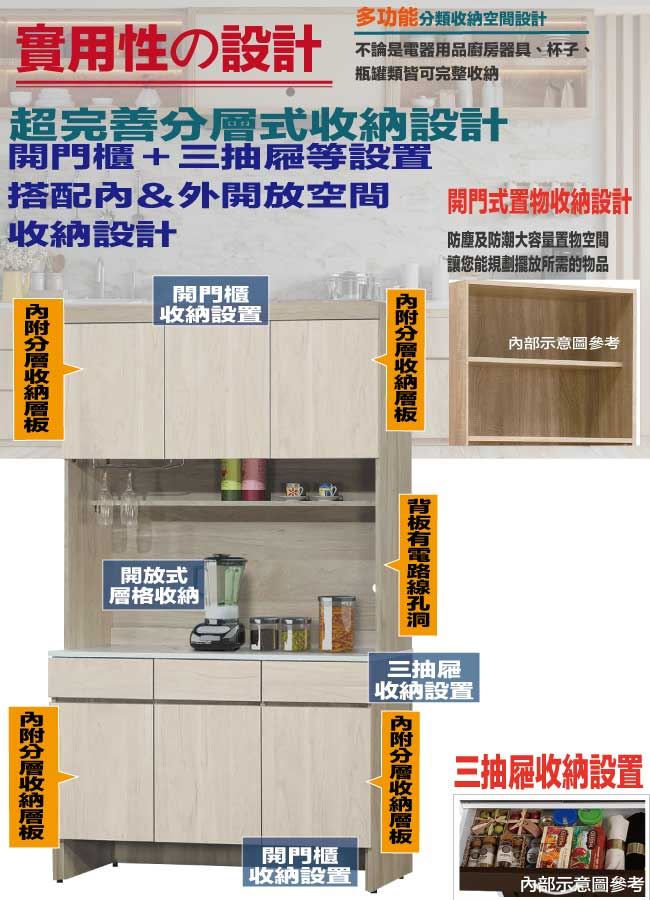 開門櫃+三抽屜+內&外開放層格