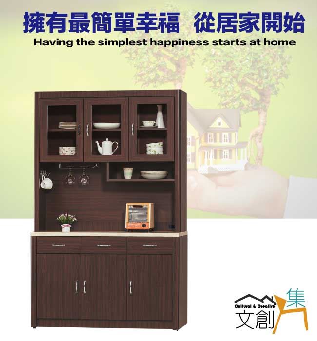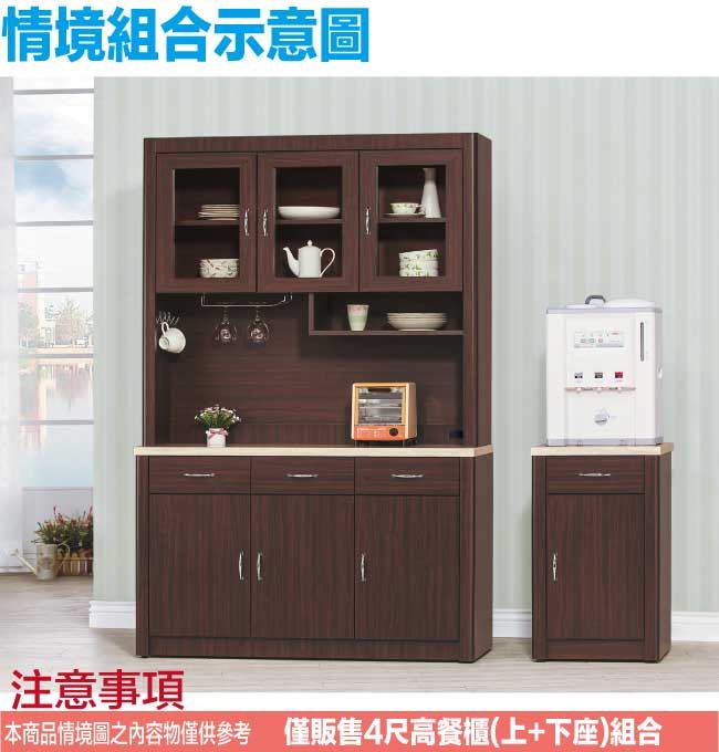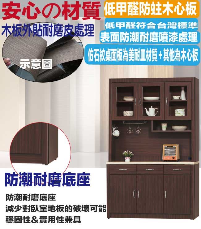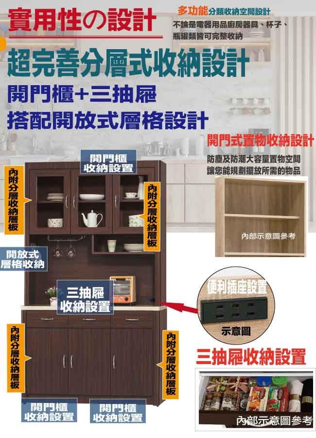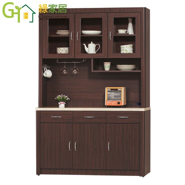 【綠家居】海亞克胡桃4尺六門三抽高餐櫃組合
