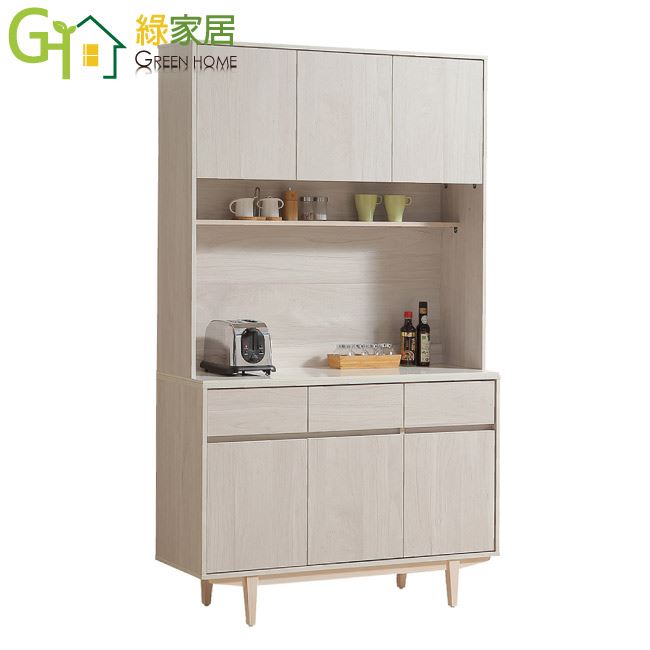 商 品 介 紹 | 【綠家居】斯巴雅4尺岩板三抽高餐櫃/收納櫃組合 淺橡木紋色系+現代簡約風格+安心材質製造,整體採用防蛀木心板+防潮實木腳座+五金滑軌結構+防夾手緩衝門片五金+12mm高硬度岩板桌面板等安心材質製造,產品外層採用防潮耐磨噴漆處理搭配採用開門櫃+三抽屜+內&外開放層格等收納空間設計,全由專人配送到家,專業安心服務,替你省下更多時間! 【商品特色】 淺橡木紋色系+現代簡約風格+安心材質製造,使用放心+搭配居家更便利 採用防蛀木心板+防潮實木腳座+五金滑軌結構+防夾手緩衝門片五金+12mm高硬度岩板桌面板等安心材質製造 搭配採用開門櫃+三抽屜+內&外開放層格等收納空間設計 此商品不需要DIY組立,此商品為組立後之成品 品質保證、專業設計、貼心服務 全由專人配送到家,專業安心服務,替您省下更多時間