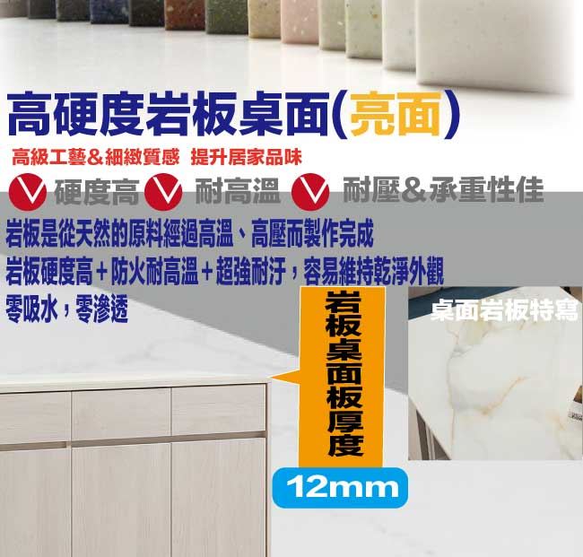 材質 | ◆產品名稱:【綠家居】斯巴雅4尺岩板三抽高餐櫃/收納櫃組合 尺寸:(寬)120x(深)40(高)207/公分 ◆材質: 材質:防蛀木心板+防潮實木腳座+防夾手緩衝門片五金+五金滑軌結構+12mm高硬度岩板桌面板 表面防潮耐磨噴漆處理 |