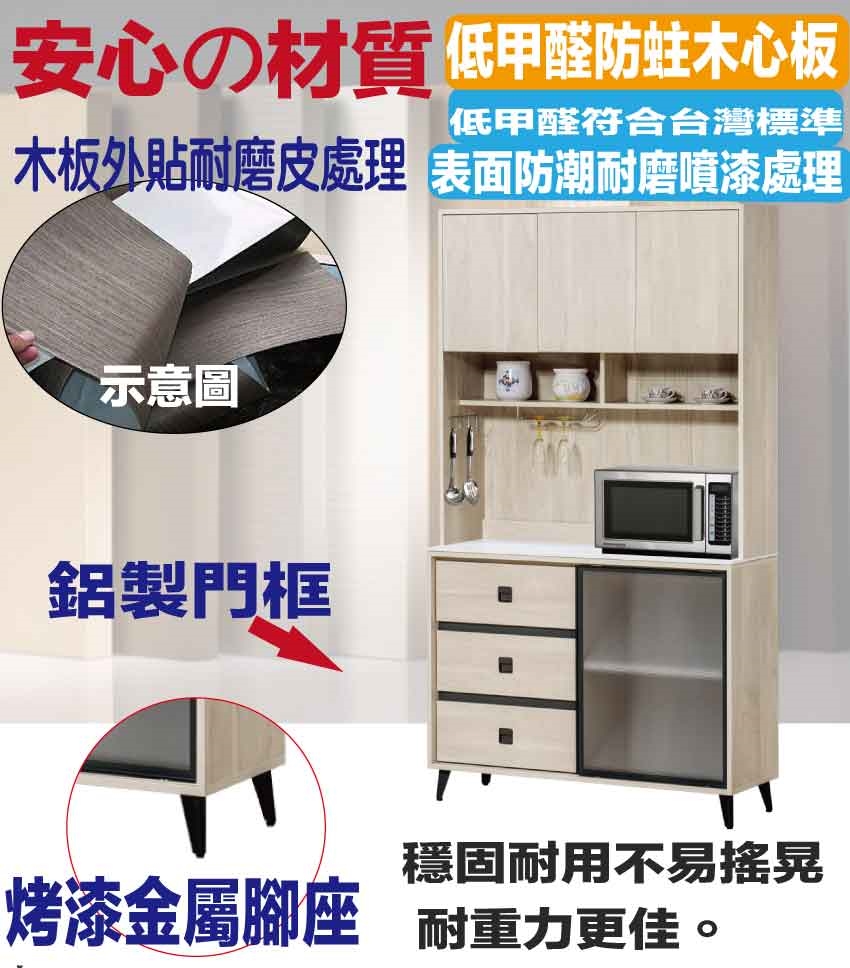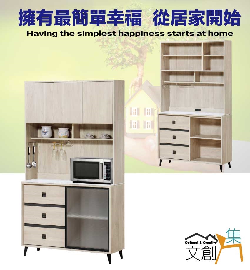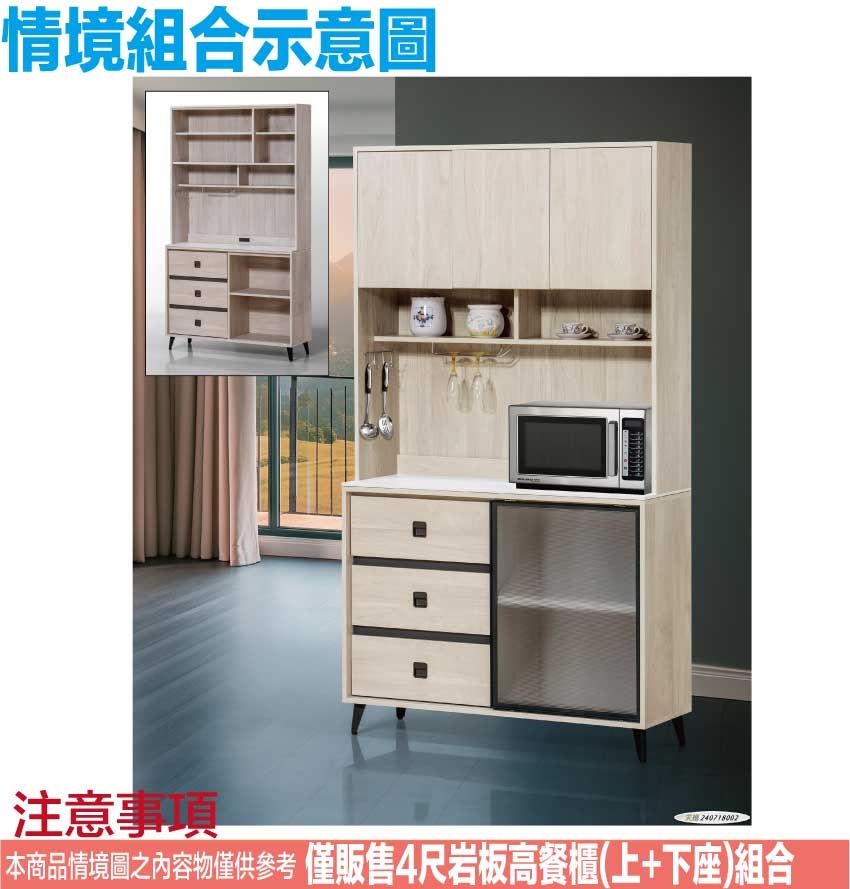- ◆產品名稱:【綠家居】蓋曼4尺岩板鋁門高餐櫃組合