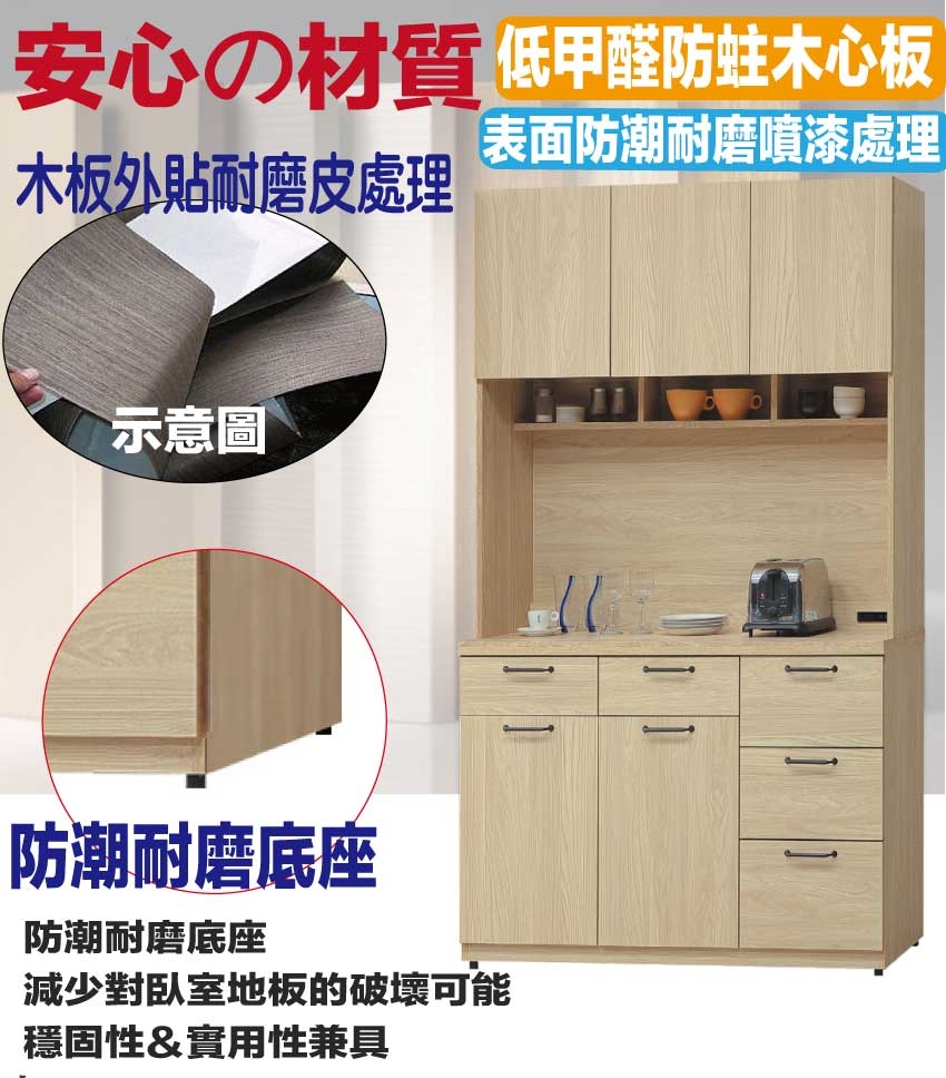 ★偏遠地區需額外加收運費,下標請先問與答詢問★ ★下訂前注意 由於商品流動較快,下訂前請先詢問是否有貨在下訂喔~★ 【綠家居】芮德爾4尺五門五抽高餐櫃組合 橡木紋色系+安心材質製造,使用放心+搭配居家更便利,採用防蛀木心板+防潮耐磨底座+防夾手緩衝門片五金+五金滑軌結構等安心材質製造 ,外層採用防潮耐磨噴漆處理搭配採用開門櫃+五抽屜(含刀叉收納抽)+內&外開放層格等收納空間設計,全由專人配送到家,專業安心服務,替你省下更多時間!