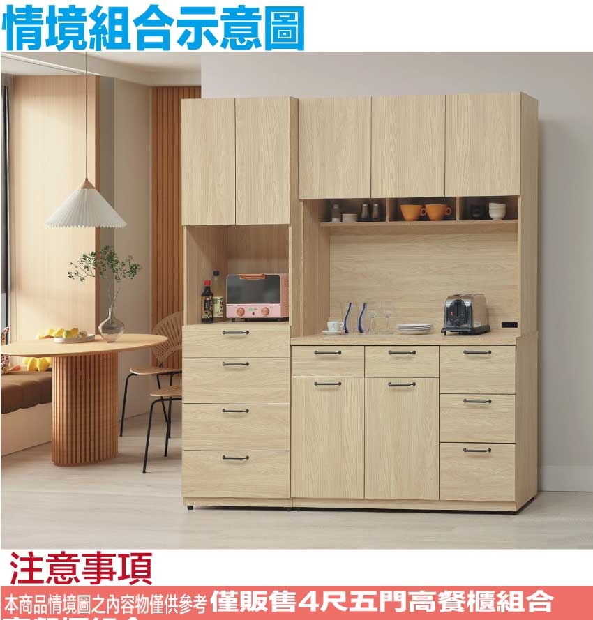 - ◆產品名稱:【綠家居】芮德爾4尺五門五抽高餐櫃組合